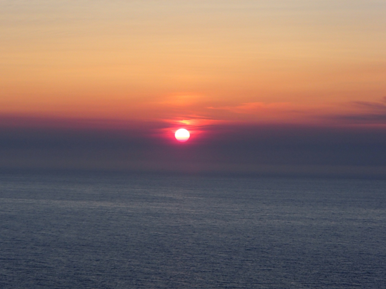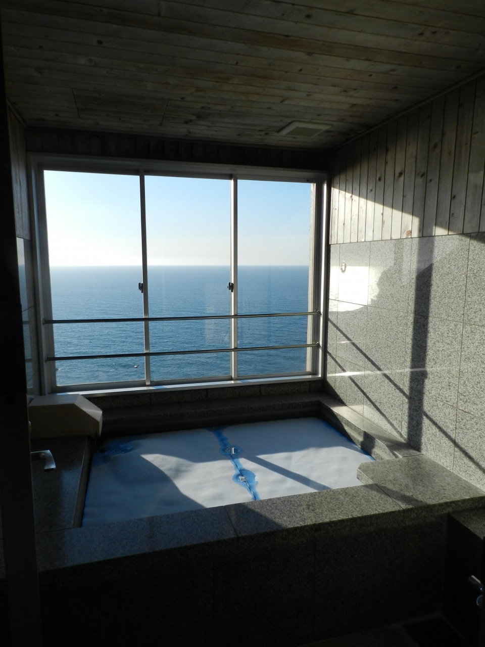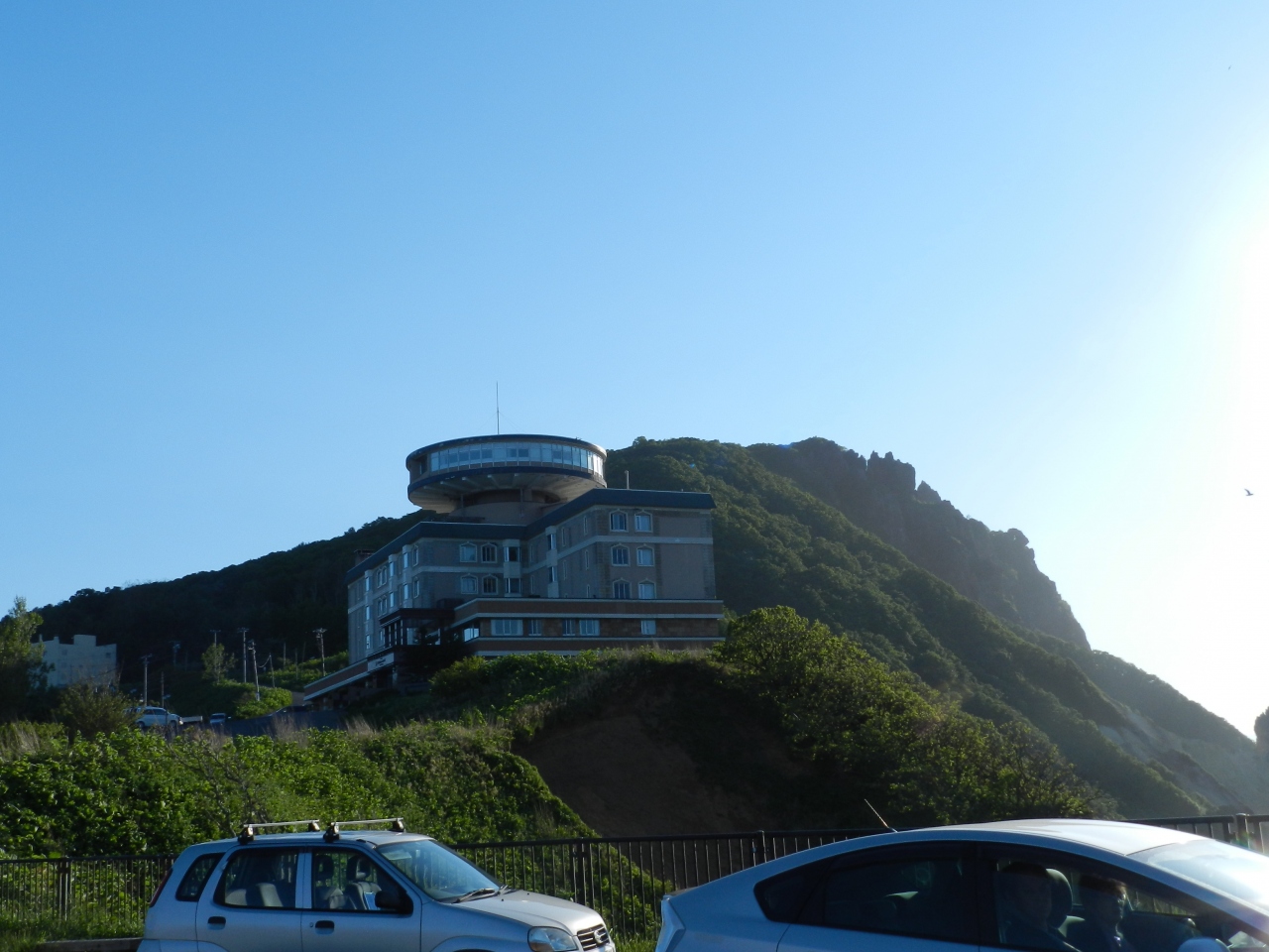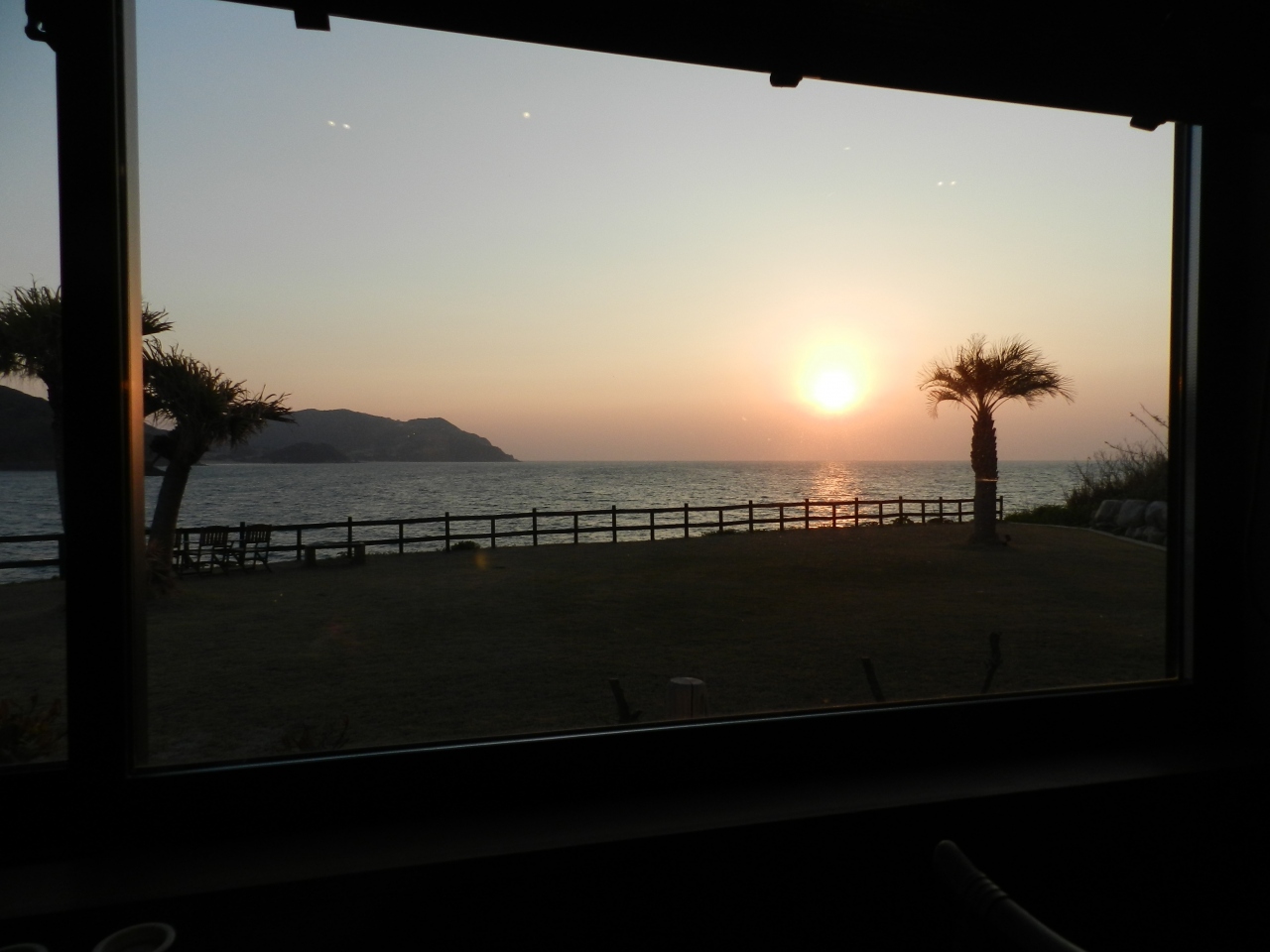ちょうど日没時刻に訪れ、海に沈む夕日が窓から見られて大感激でした。