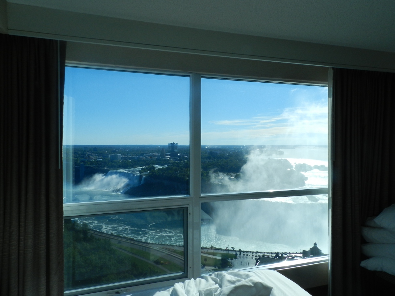 せっかくナイアガラに泊まるんだったらということで、部屋の窓から「アメリカ滝」&「カナダ滝」の両方が見えるホテルを選びました。