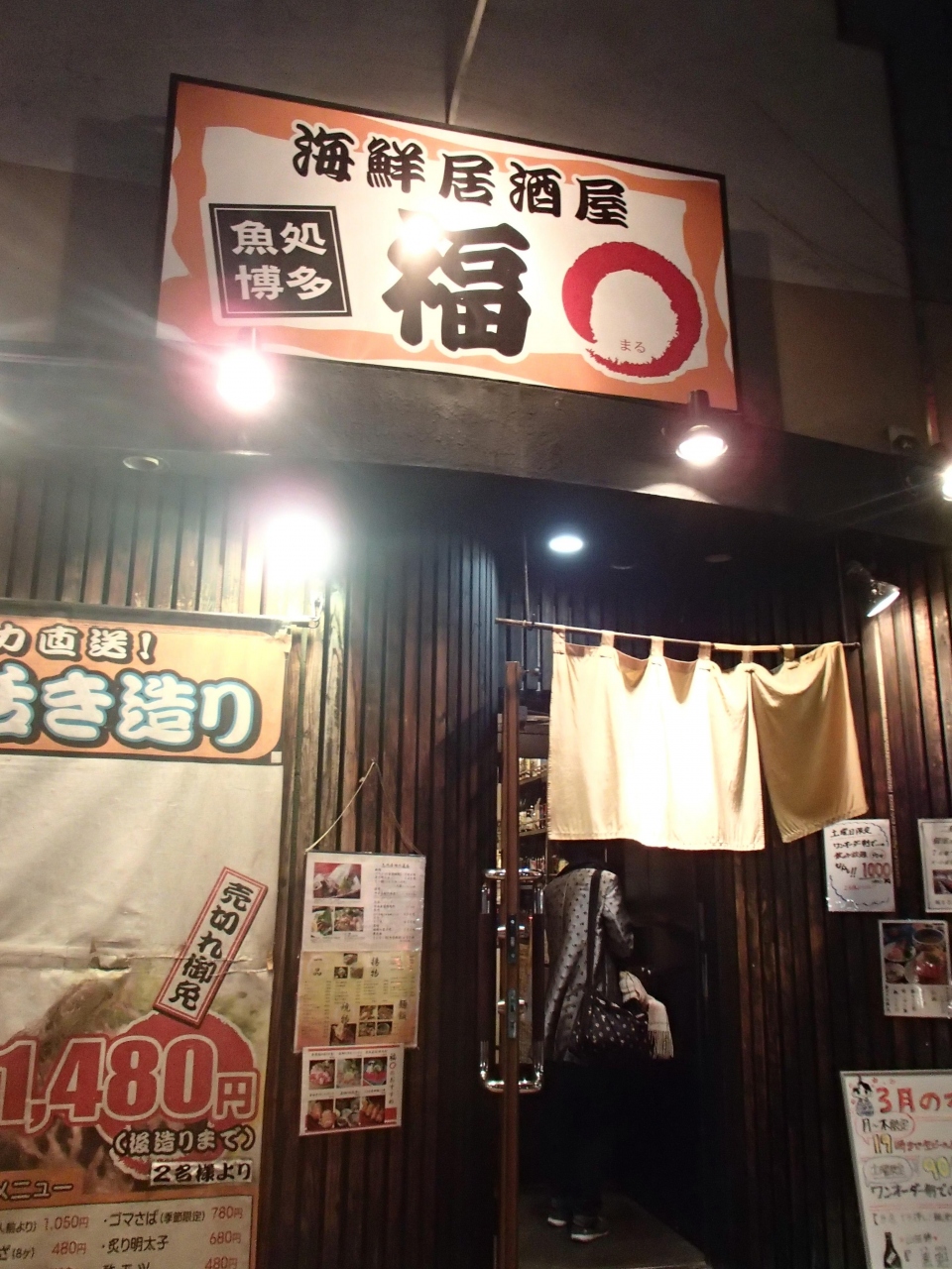 JR博多駅(博多口)から北へ歩いて5~6分のところ(地下鉄祇園駅から3~4分)、博多区役所の近くにある居酒屋さんです。