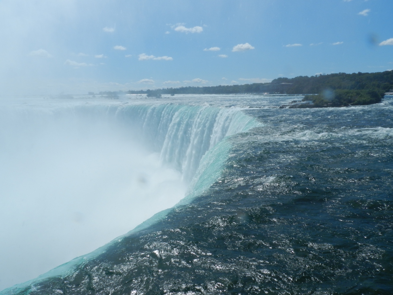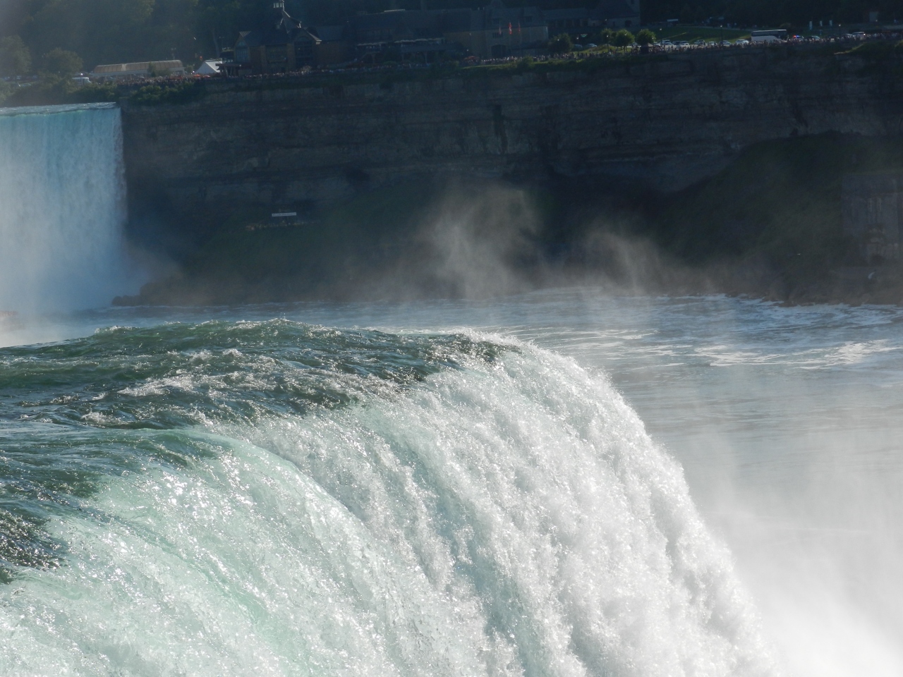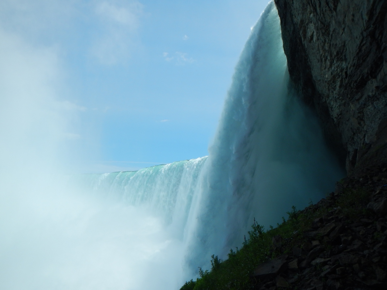 入り口でカッパを貸してくれて、まずはカナダ滝を真横から見ました。
