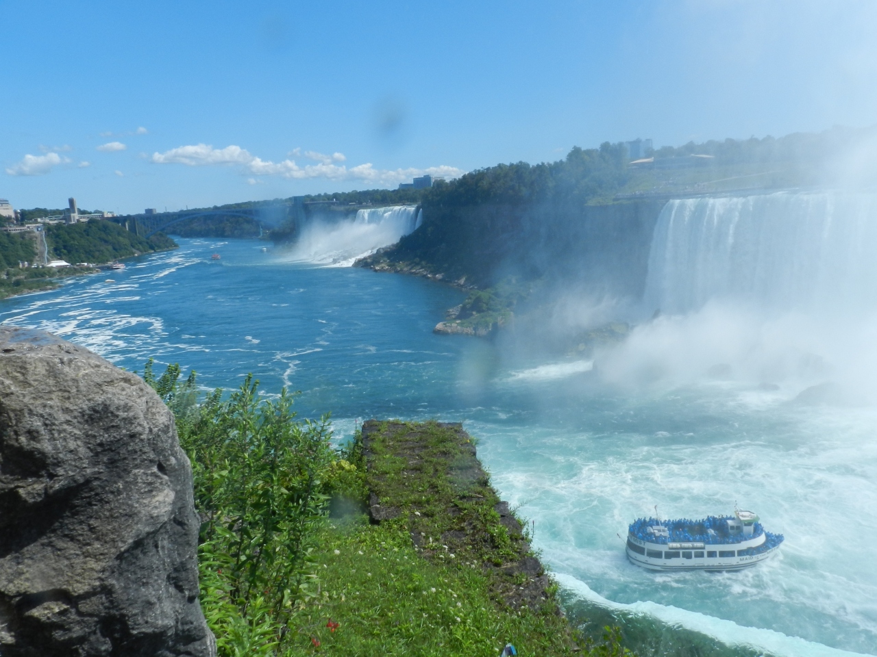 アメリカ滝は、落差58m・幅330m。幅はカナダ滝の半分ですが、落差はカナダ滝よりも少し高いので、間近で見ると迫力は負けていないと感じました。