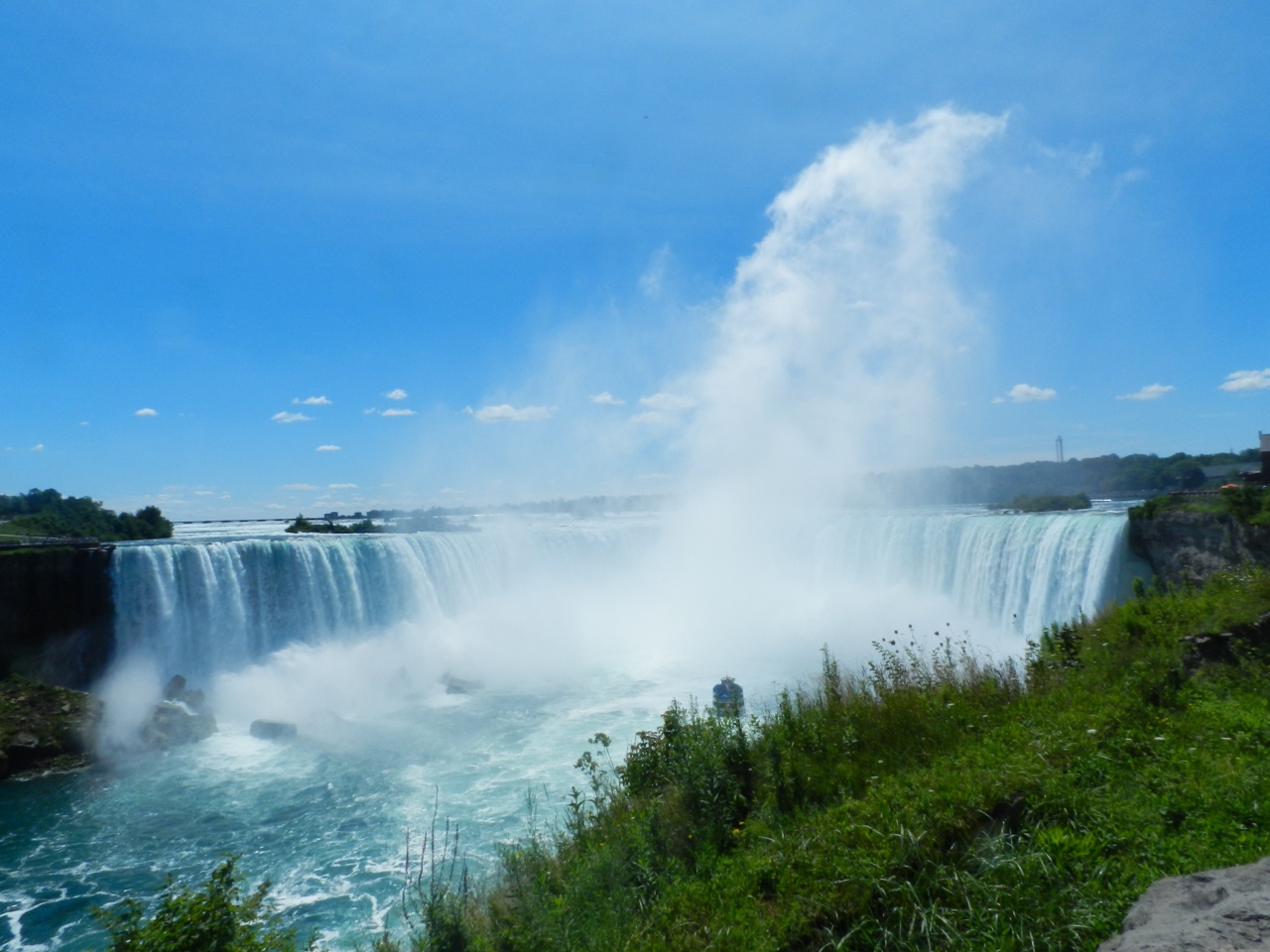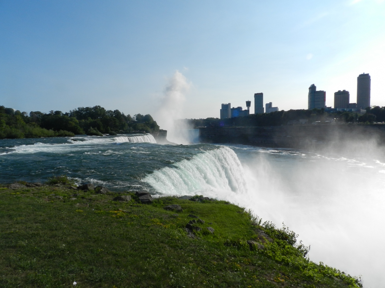カナダ側に滞在すると、アメリカ滝は遠望だけで済ませてしまう人も多いかもしれませんが、徒歩で国境を渡るワクワク感と間近で見る滝の迫力に感動しました。
