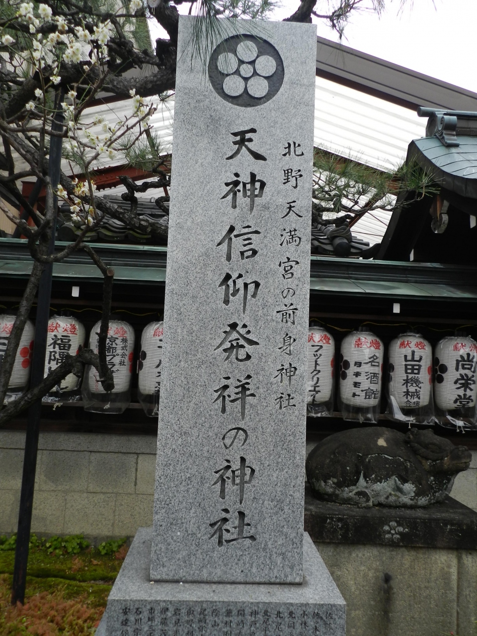 境内は決して大きなものではありませんが、ちゃんと拝殿もあります。また、菅原道真が大宰府に左遷されると決まった時、ここに立ち寄って腰掛けたと云われている「菅公 腰掛石」がありました。