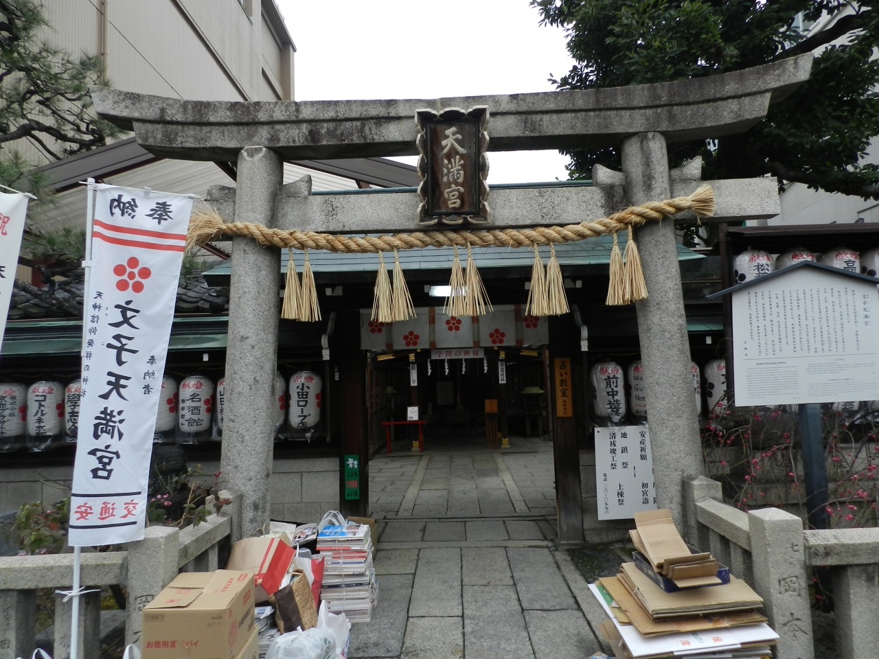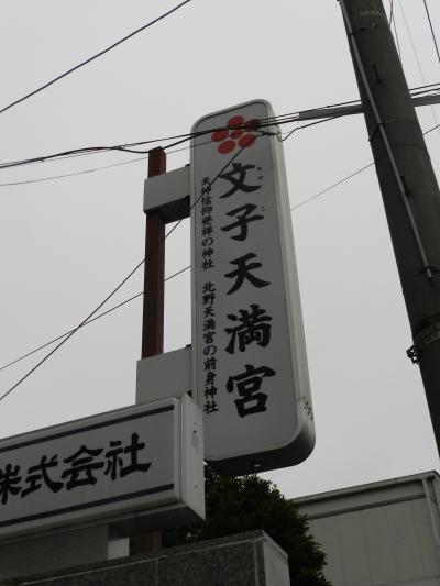 地下鉄五条駅から東へ少し歩いたところの間之町通り沿いに小さな神社があり、『文子天満宮・天神信仰発祥の地』と書かれたサインがあります。