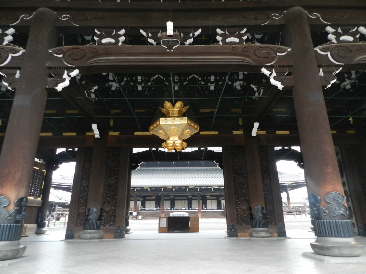 京都駅から烏丸通を北上すると左手に超巨大な門が見えます。その門が東本願寺のメインゲート「御影堂門」で、日本の山門の中でも最大級の大きさを誇ります。また、"京都三大門"の一つとして数えられたとても立派な門です。ちなみに、"京都三大門"とは「南禅寺三門」「知恩院三門」「東本願寺御影堂門」と云われていますが、3つめは「仁和寺の二王門」「東福寺の三門」という説もあります。