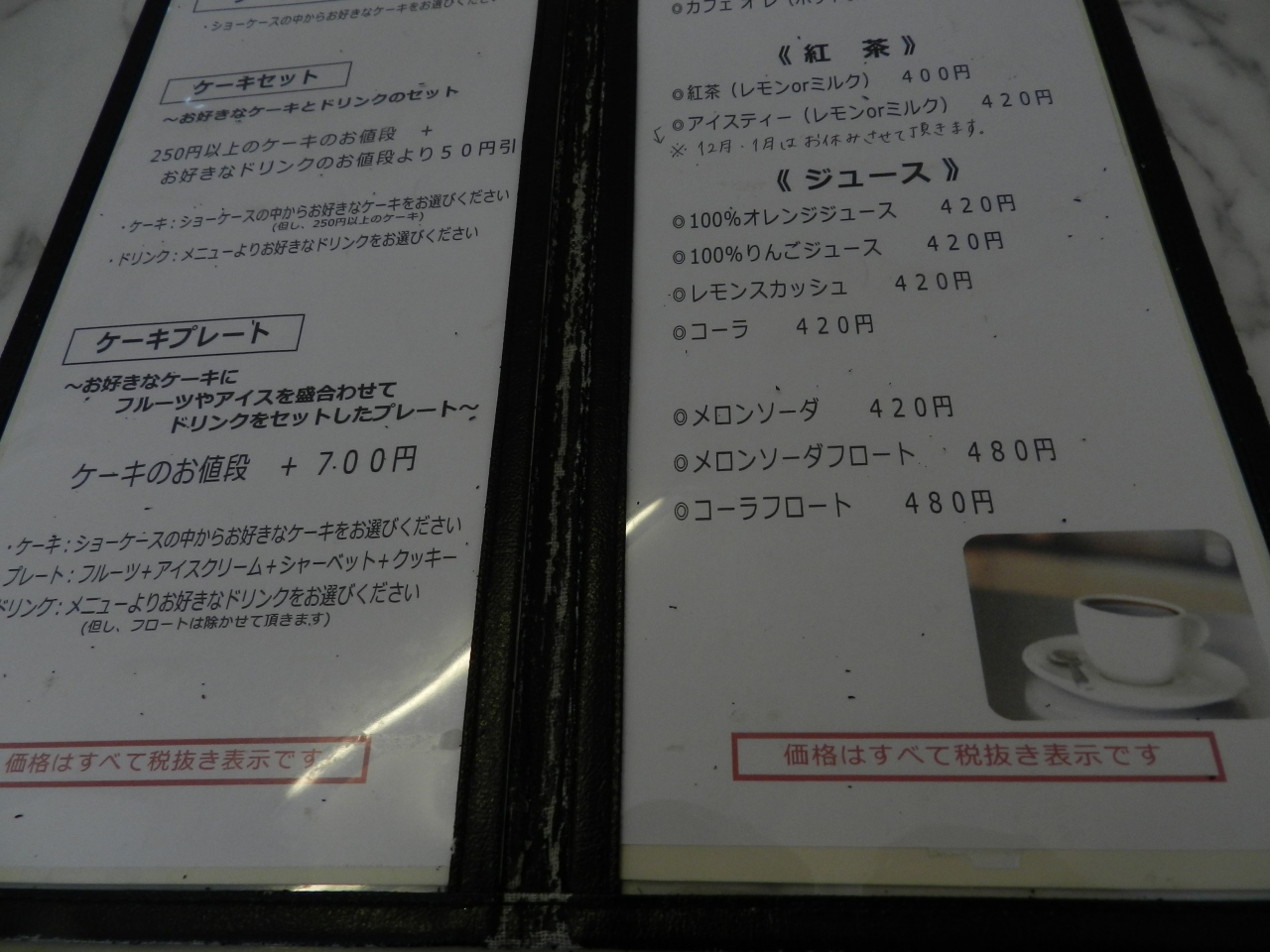 - ケーキセットが1000円、そんなものかな…