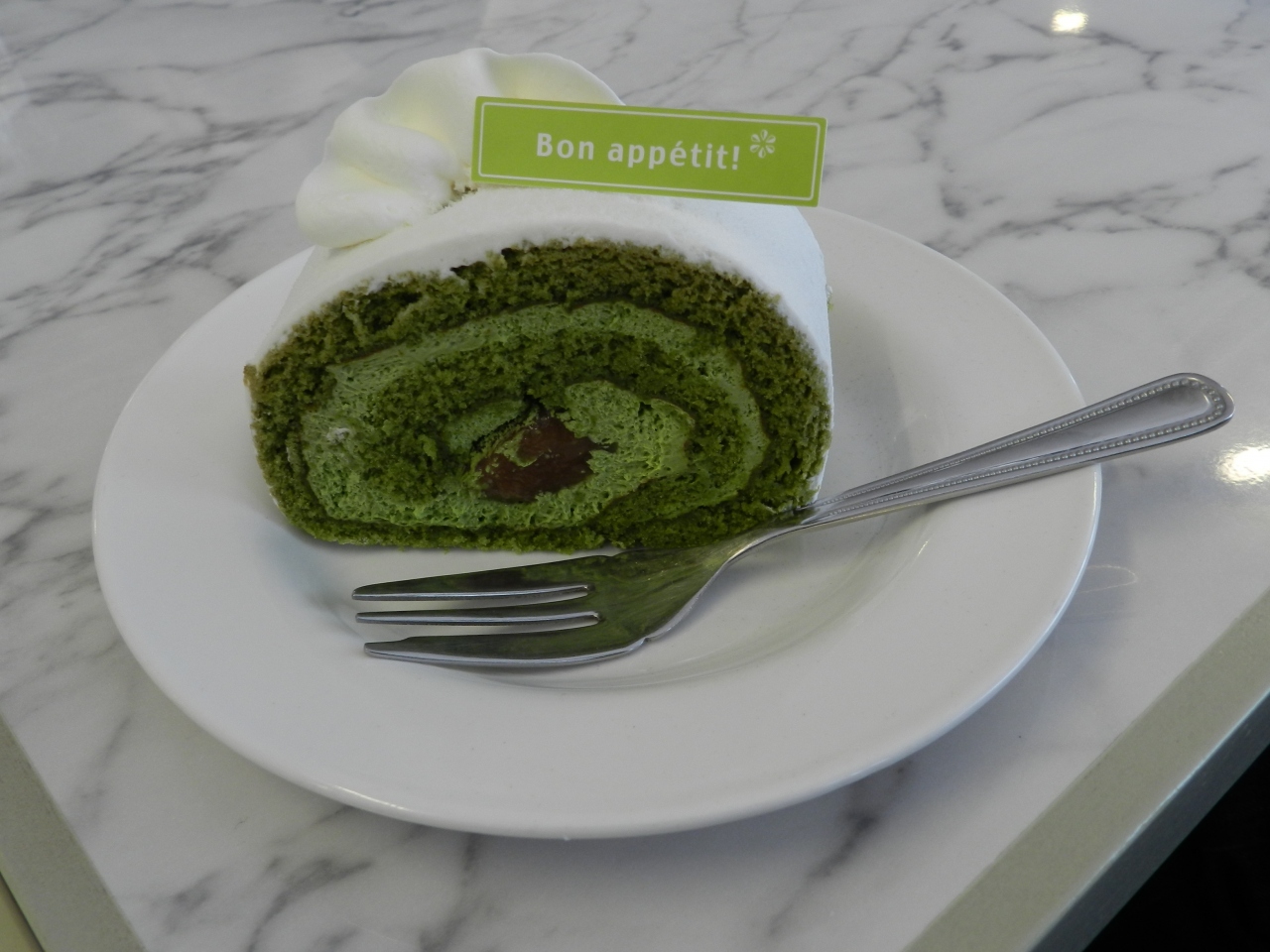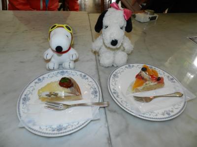 私は「カルディナール」というフルーツをいっぱい挟んだケーキをいただきました、連れは「抹茶ロール」をオーダーしました。