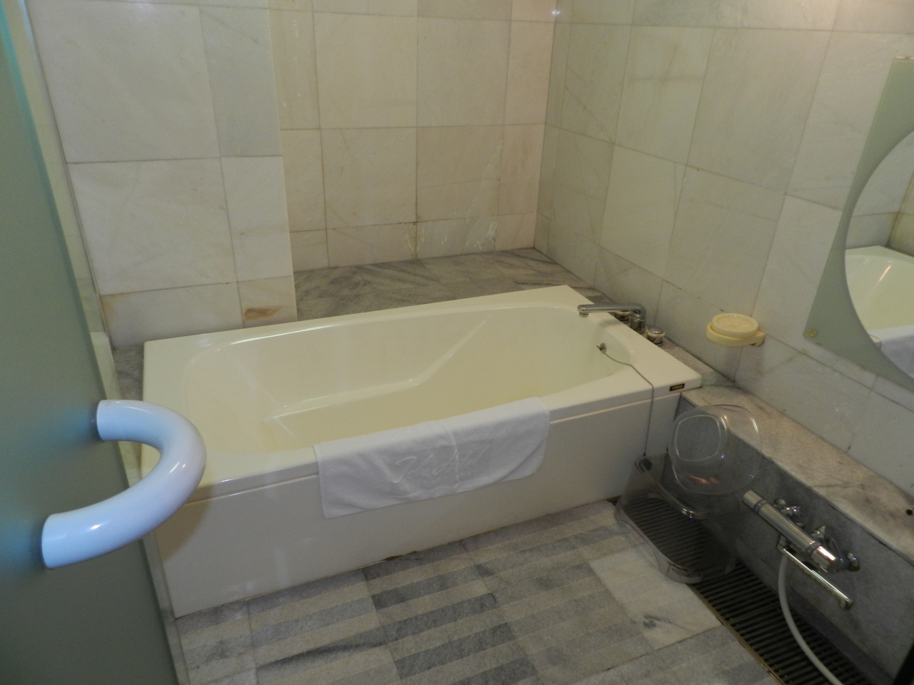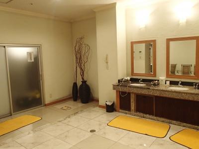 客室内ノバスルームは、バス・トイレ・洗面台が一体となった典型的なユニットバスでしたが、このホテルには大浴場があるのでお風呂はそちらで入りました。