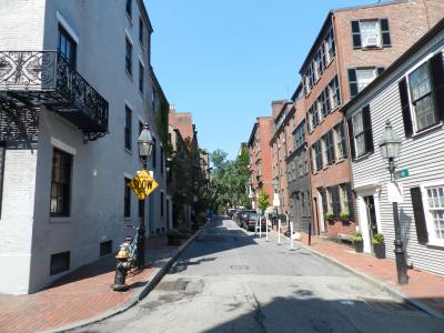 MBTA・レッドライン「Charles/MGH」駅の南側一帯(ボストンコモンの北側)に位置する『ビーコンヒル(Beacon Hill)』は、ジョージア様式・レンガ造りの家並みが連なる住宅地です。