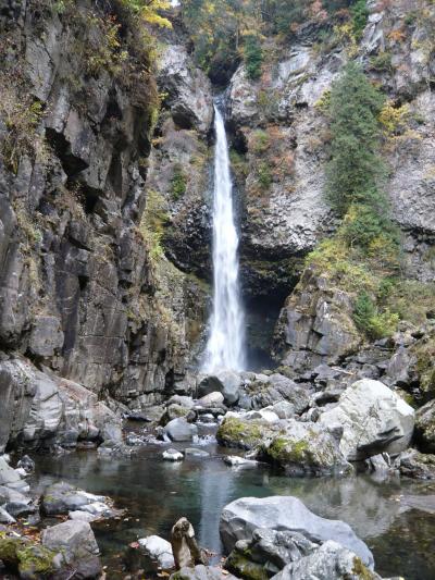 御嶽山の西麓・濁河(にごりご)川の本流にかかる『根尾の滝』は、公称値落差63m(実際には40m前後)の直瀑で、日本の滝百選に選ばれています。