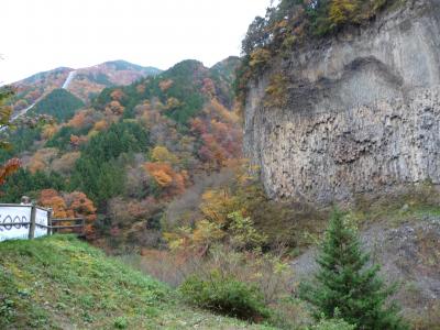 また、がんだて公園周辺の谷を「サワラ谷」と呼び、巨大な柱状節理の奇岩が目を惹きます。御嶽山の噴火による溶岩がこのような不思議な巨大奇岩を造り出したそうです。