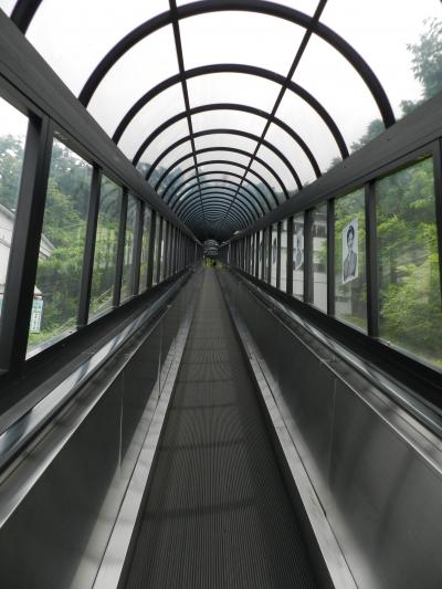 麓にある市営駐車場から数分歩くと入口があり、最初は上りのムービングウォークになっています。大人400円が必要ですが、高齢の義父が一緒だったのでありがたかったです(自力で歩く方は400円は不要)。