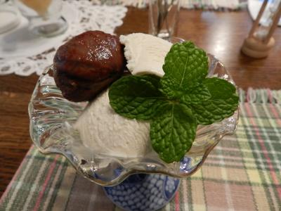 アイスの上に大きな丹波栗が載ったデザートはかなり美味しかったです!
