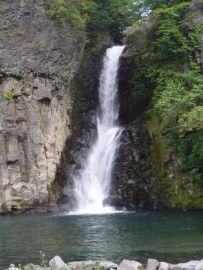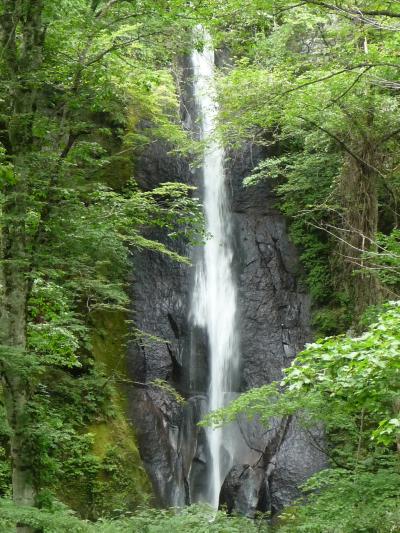そのうちの一つ、『銚子の滝』は落差約18mの段瀑です。私が行った日は水量が多かったようで、二段の段瀑の境目が見えなくて直瀑のように見えました。
