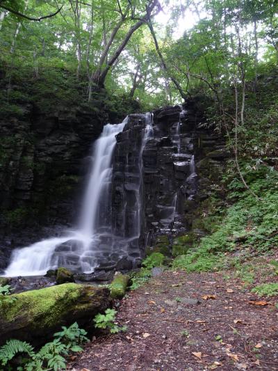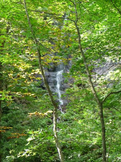 奥入瀬・銚子大滝から下流方向へ約1.5km、右岸側(道路側)にある細い流れの滝ですが、木々に隠れている部分もあるので全容はつかめません。