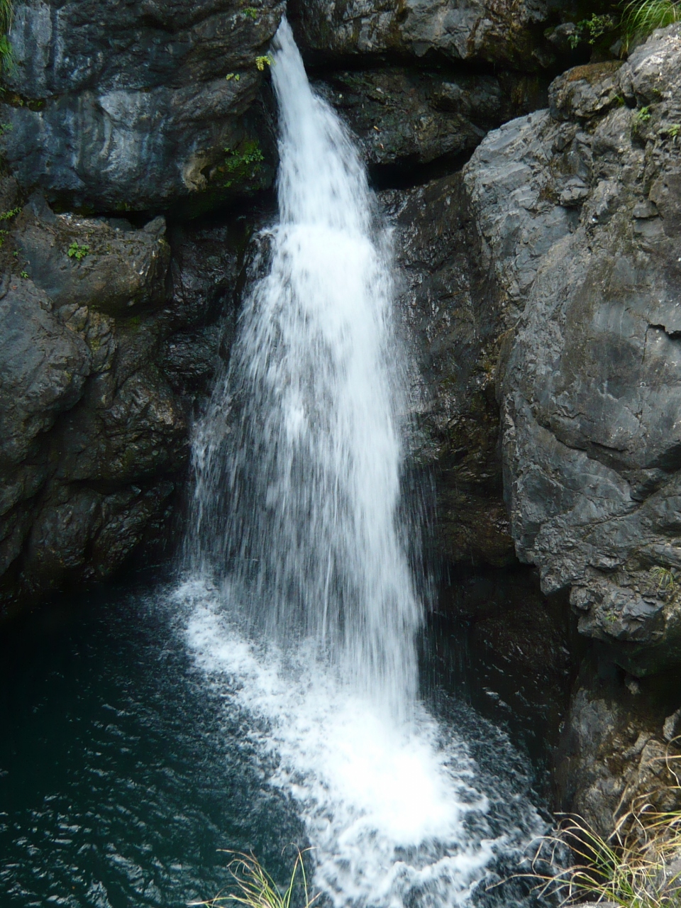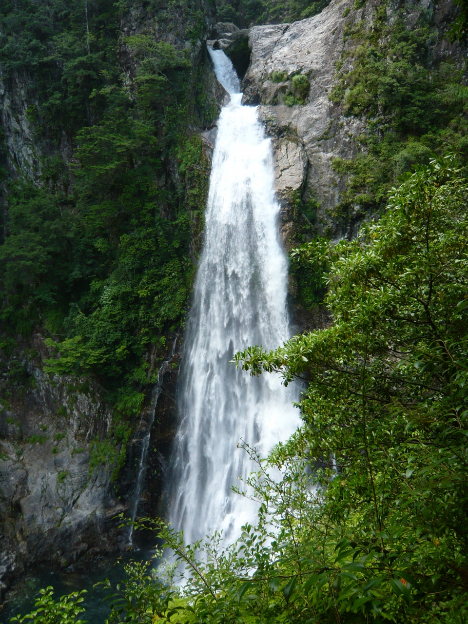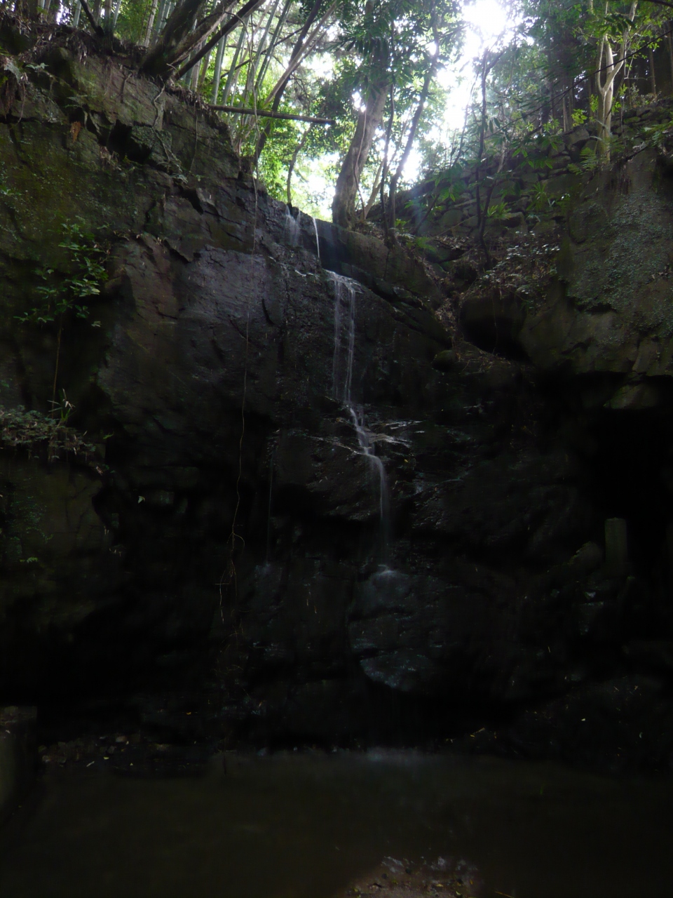 落差目測6m程の分岐瀑ですが、訪れた時刻が夕方だったせいか、薄暗くて上手く写真が撮れませんでした。水量が多く、明るい時刻ならもっと美しく感じたことだろうろ思います。