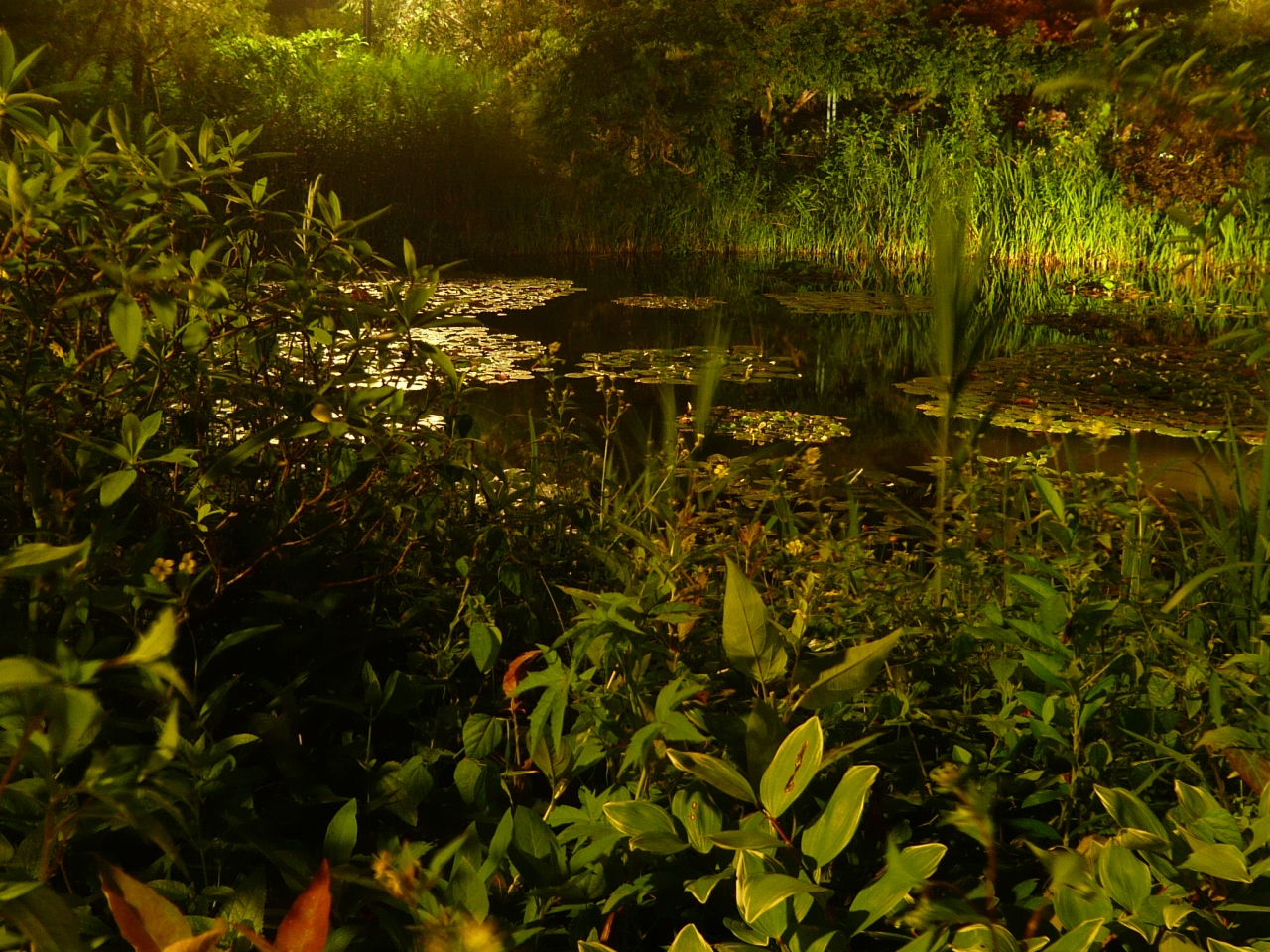 ほのかな灯りに照らされた庭園は昼間とはまた違った趣きがあります。特に写真の「睡蓮の庭」はとても幻想的です。