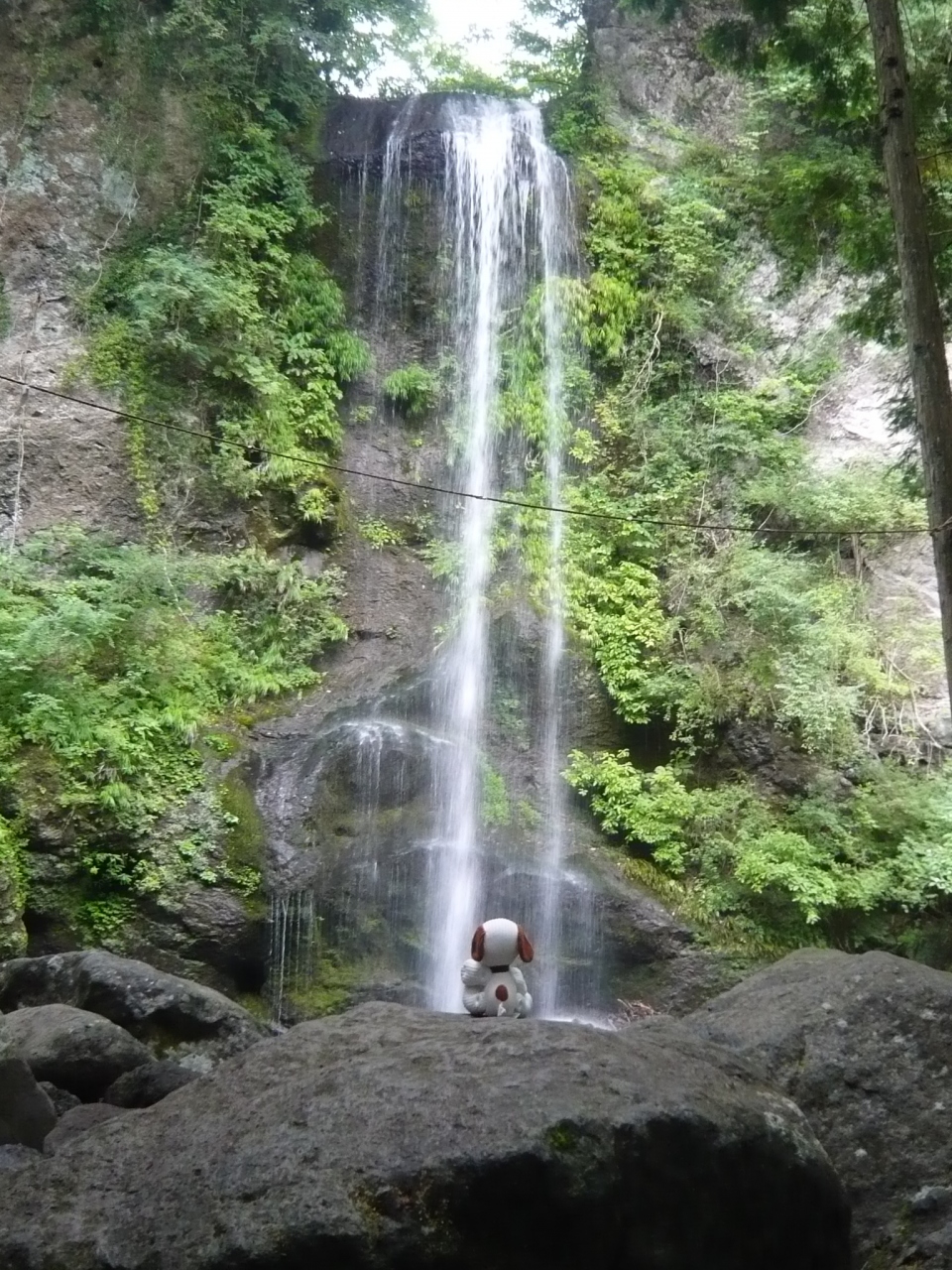 登りきると目の前に、不動七重の滝では最大落差の大滝が現れます(写真)。真正面に見える大滝は水量も豊富で迫力満点です。