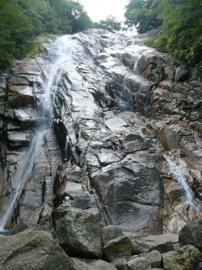 巨大な花崗岩の岩肌を流れる涼しげな滝の風景と澄んだ水をたたえた滝壺が印象的でした。