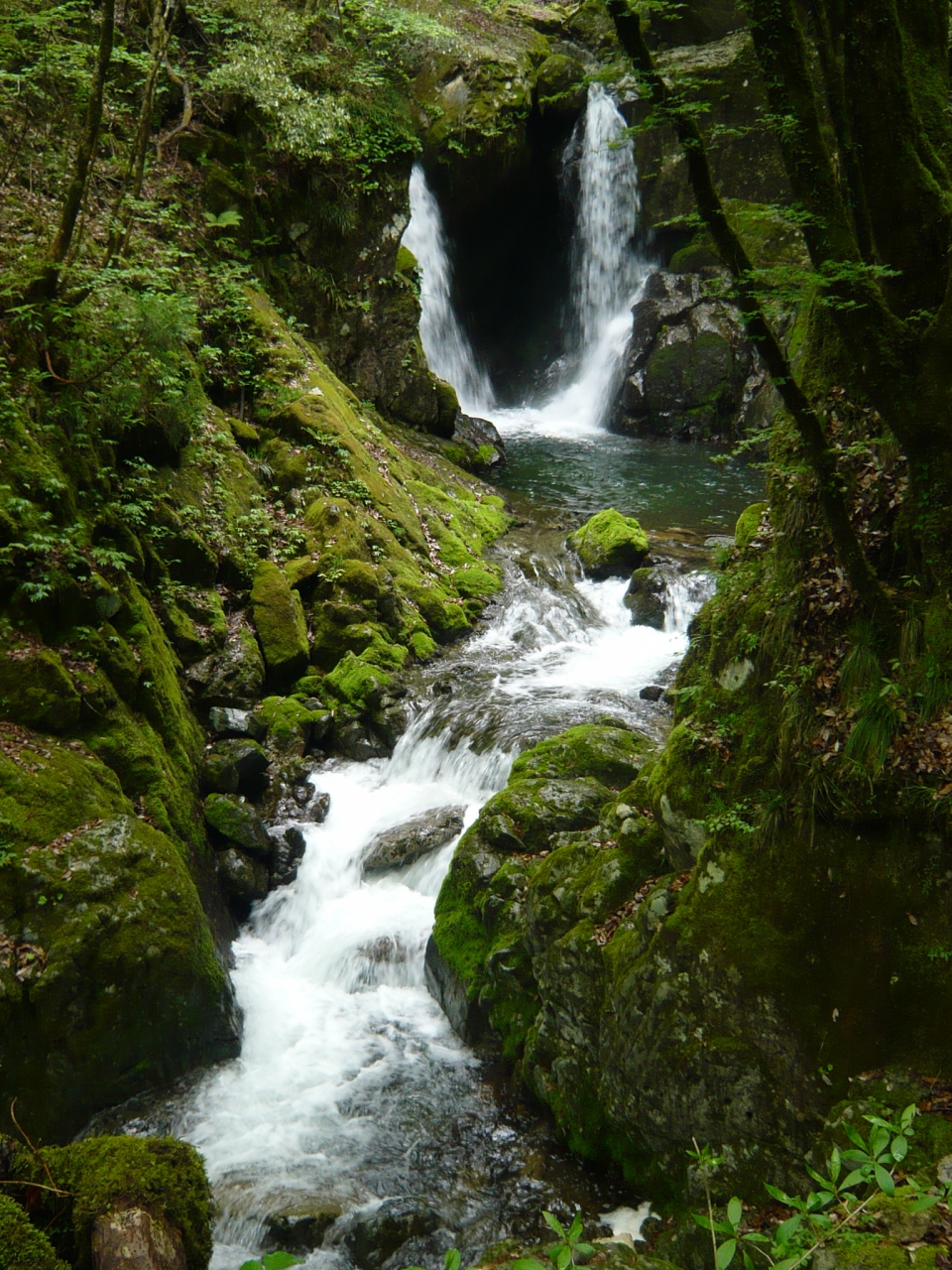 周辺の木々は、ブナ・カエデ類の落葉樹が多く、新緑・紅葉ともに美しい滝景色を楽しめるスポットです。