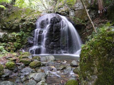 中国道・山崎ICから国道29号線を北に約35km、音水川沿いの林道に入って程なく明神滝の看板があります。駐車スペースから歩いて2~3分で滝に到着します。