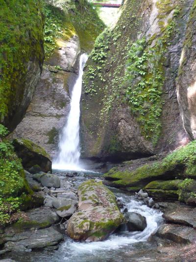 落差は目測で約6m、水量も多くなく滝そのものはあまり見応えはありませんが、国道から徒歩5分のところに鬱蒼とした森の中に滝があることに感動します。