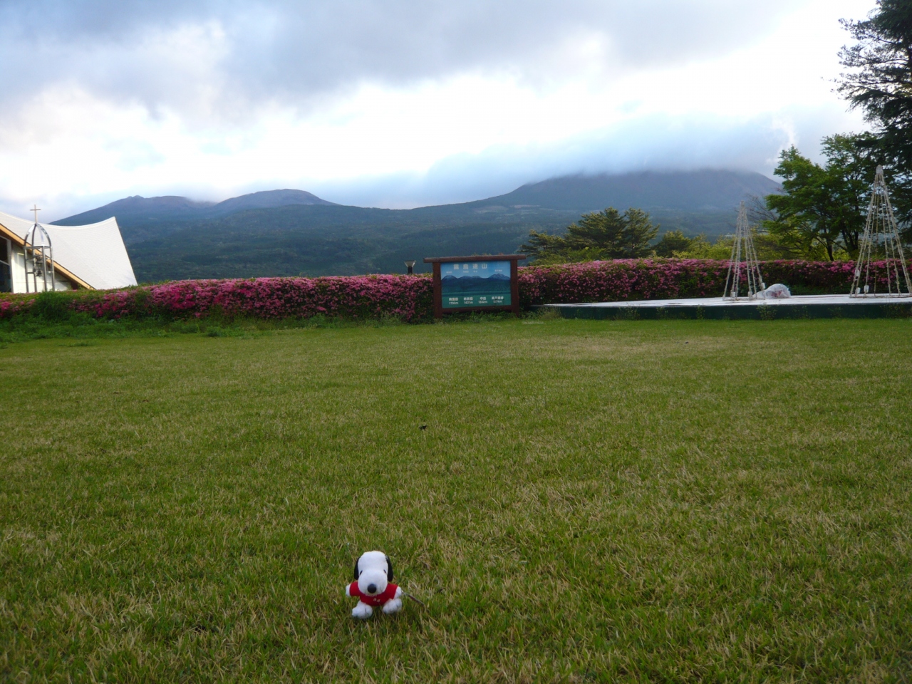 写真は、ホテルの芝生広場から見た霧島連山の風景です(高千穂峰山頂には雲がかかっていますが)。