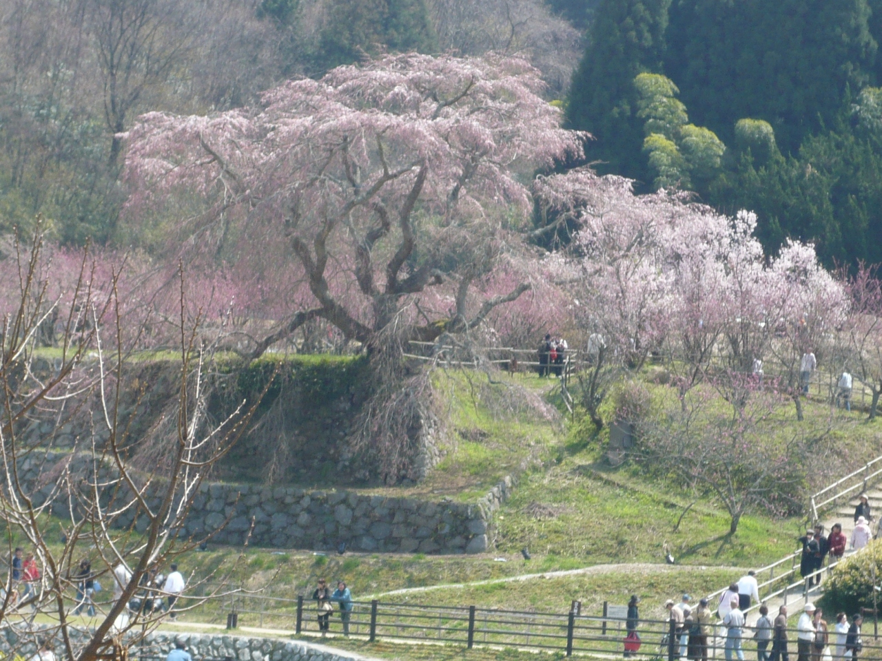 大きな枝垂れ桜が田園地帯にポツンとあるだけなのですが、その分存在感があります。私が訪れたのは、2008/4/6でしたが、若干早かったようで、五分咲きくらいでした。