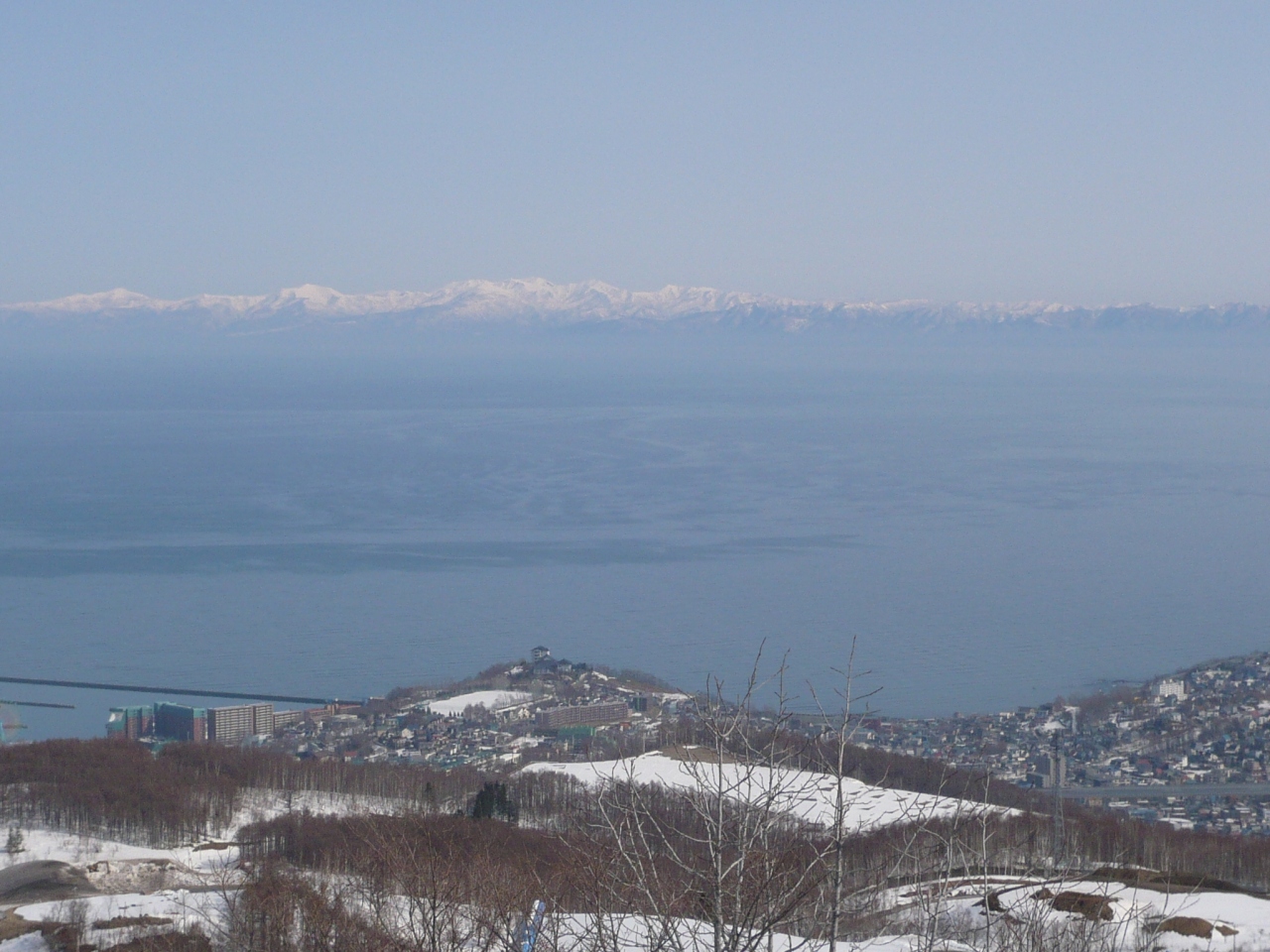 私たちが行ったのは3月下旬の快晴の日だったので、雪が残る市街地と海の青と増毛山地の白い山々の風景が雄大で素晴らしかった!!