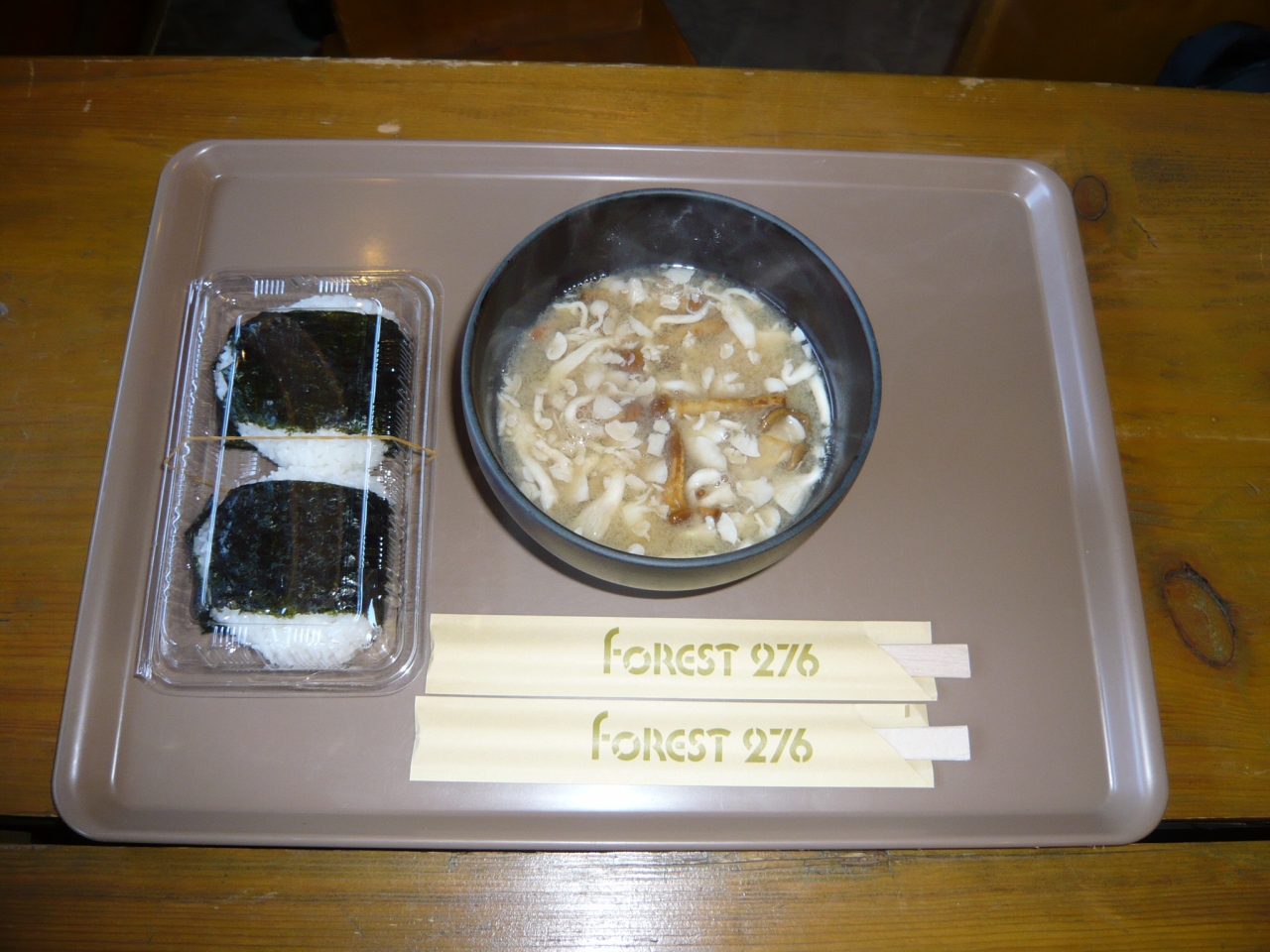 ひとつは、表題にも書いた「きのこ汁」です。1杯150円のきのこ汁に10種類以上のキノコが入っていて、これがヘルシーで美味しいんです。