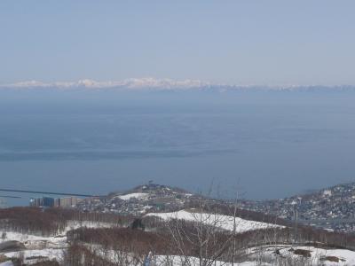 この展望所からの景色は抜群!!小樽市街地はもちろん、その向こうの海と増毛山地を一望することができます。
