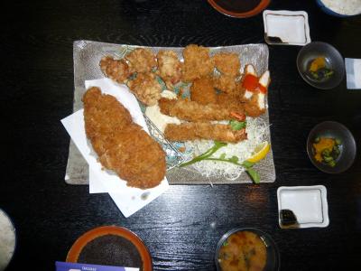 南港ATC・オズ南館3Fにある、かつ屋の『鷹ヶ巣』というお店ですが、2人分たっぷりのバラエティ・カツのセットが2,480円(ご飯&味噌汁2人前付き、おかわり自由)ととてもお得です。充分にお腹いっぱいいになりました。