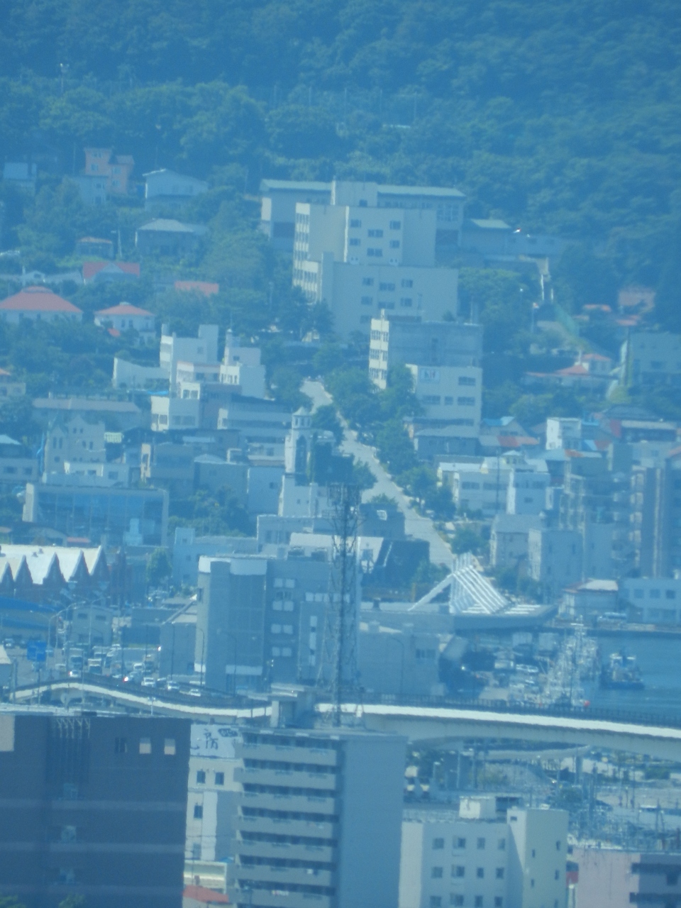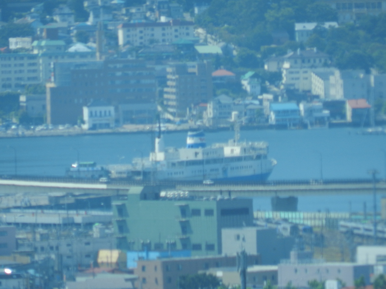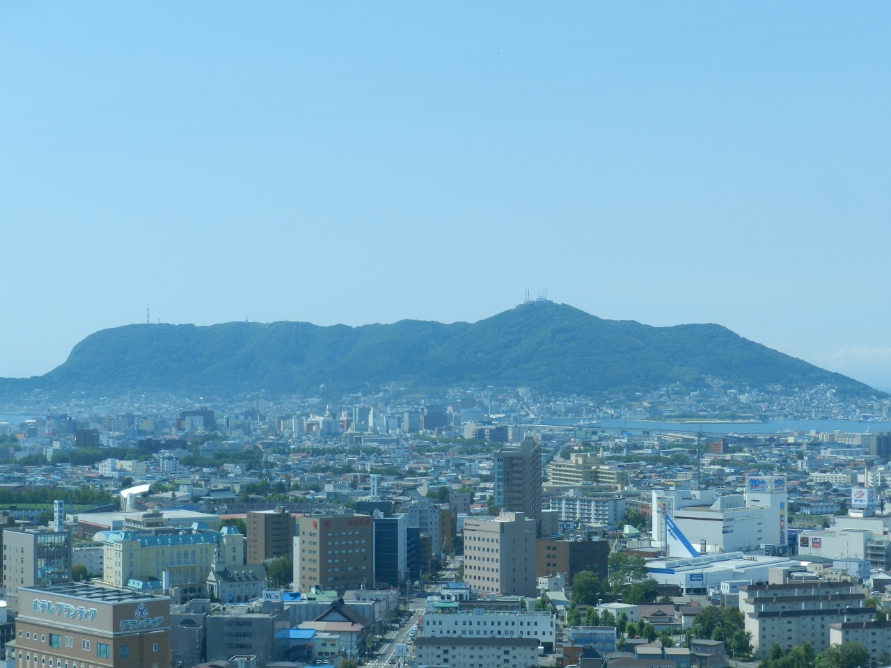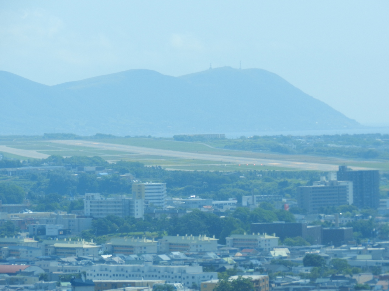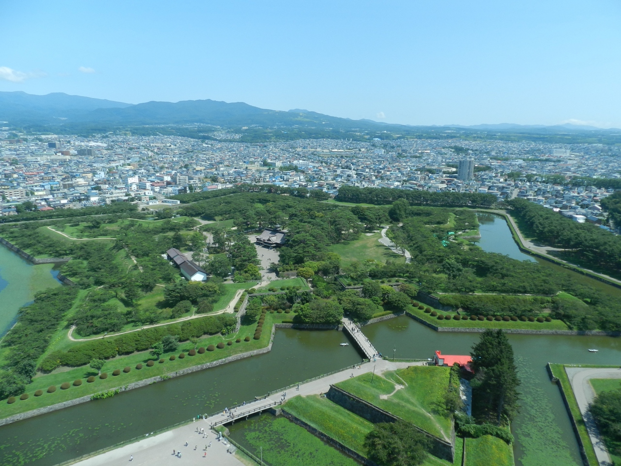 五稜郭の五角形がくっきりと見えるのはもちろんですが、函館市内の「八幡坂」や港に浮かぶ「摩周丸」、向こうには函館山や立待岬、東側には函館空港や恵山方面などを見ることができました。