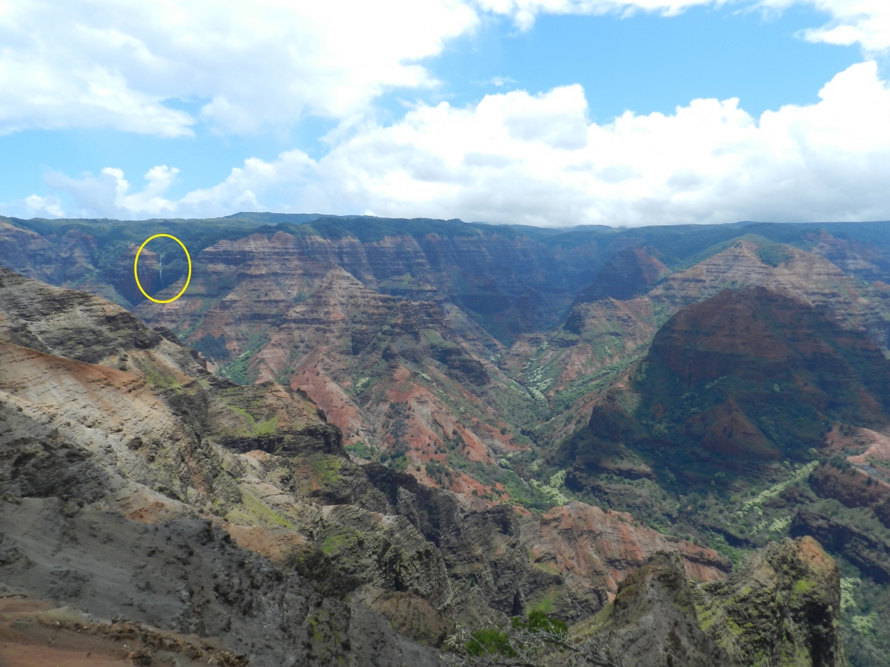 そこから少し奥に進むと、『ワイメア渓谷』にかかる大きな滝「ワイポオ滝」を正面に望むことができる場所があり、落差240mという雄大な滝の風景も見られます。