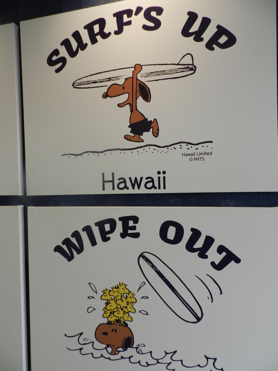 スヌーピーと仲間たちをモチーフにしたグッズが置いてあることは珍しくありませんが、彼らの全てが日焼けしていること、ハワイの風景などを背景にしていることが特徴です。