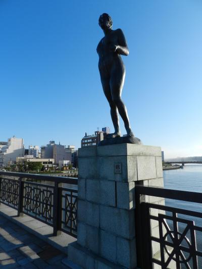 現在の橋は昭和51年に建造されたもので、4体の乙女のブロンズ像が橋の上に立てられています。