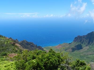 さらに奥に走ると「カララウ展望台(Kalalau Lookout)」があり、そこからは海に続くV字谷の渓谷と美しい太平洋を見ることができ、まさに絶景でした!