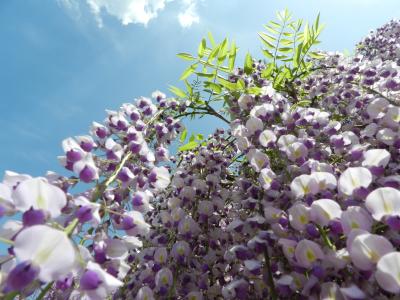 辺りには藤の花の香りが溢れ、紫の花や白い花などが房となって垂れ下がる光景はとても見事でした!