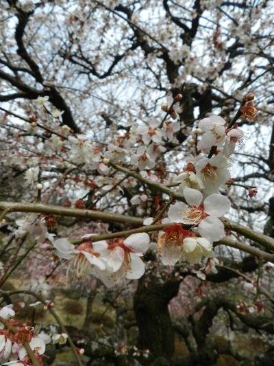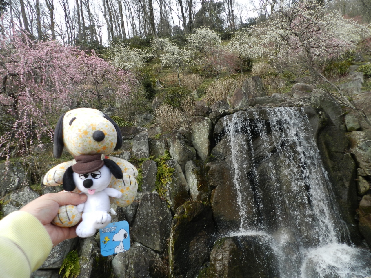 私が訪れたのは3月25日、園内にはいっぱいに枝垂れ梅が咲き、見事な風景でした。