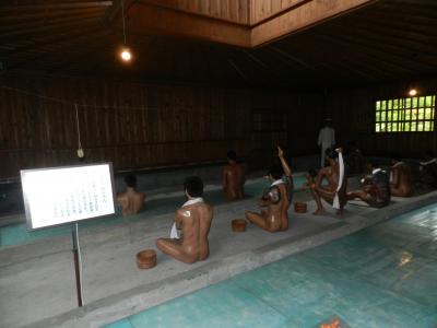 背中に入れ墨のある囚人たちがお風呂に入っっているシーンを再現してあります。