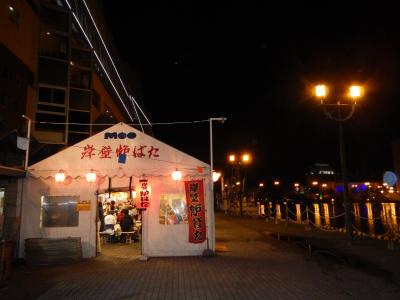 釧路川の河口に位置する「釧路フィッシャーマンズワーフMOO」前の岸壁にテントが張ってあり、そこが『岸壁炉ばた』になっています。