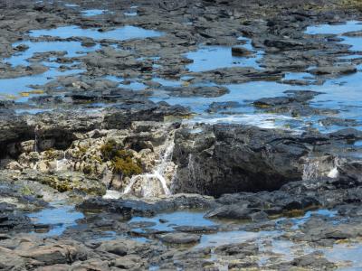 海岸を形成する岩石が溶岩になっていて、その溶岩の隙間から潮を吹き上げます。