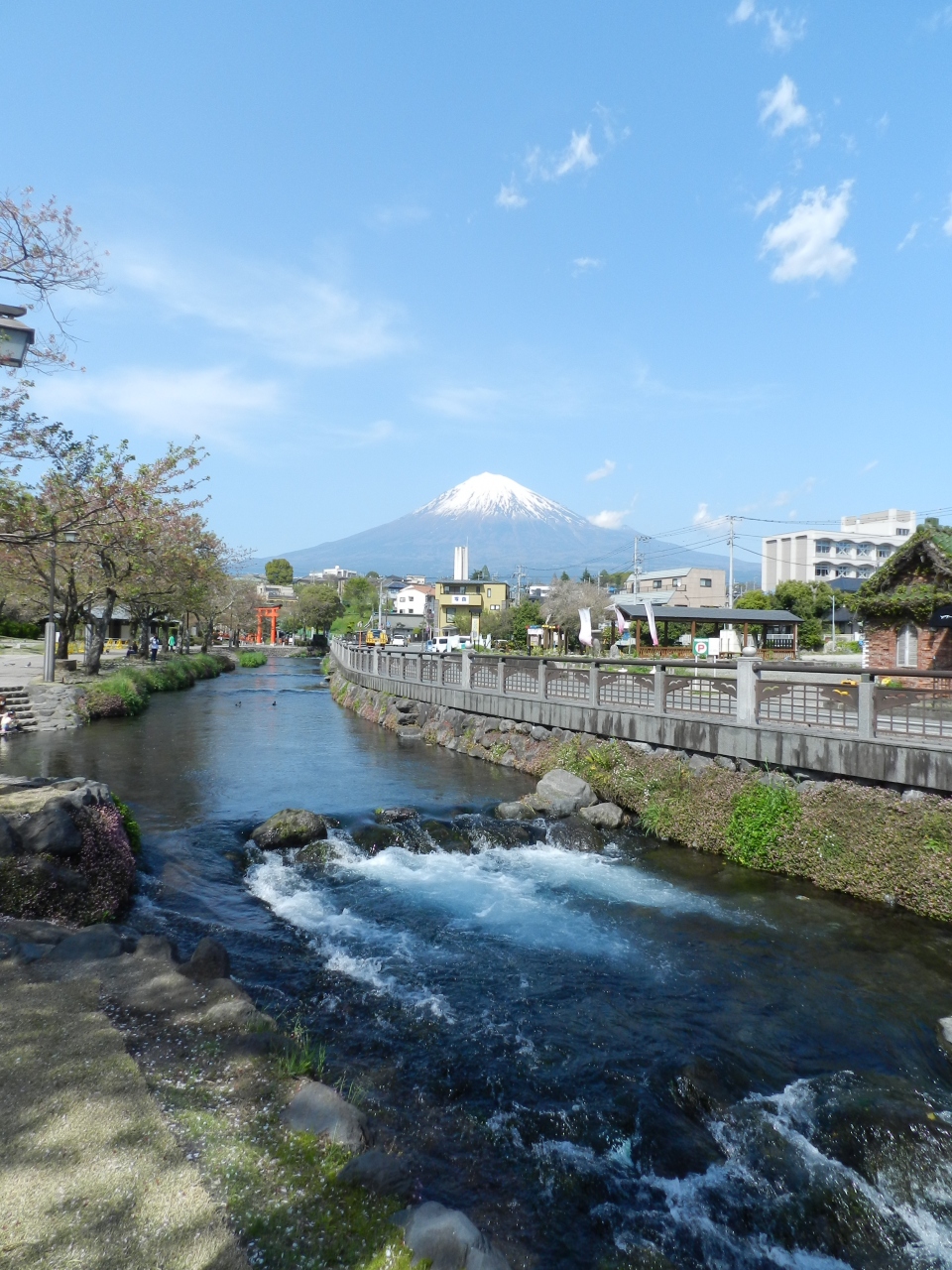 境内の横には、富士山の雪解け水を源とする神田川が流れ、神田川にかかる橋から見える富士山の風景は言葉にできないほど素晴らしかったです!!