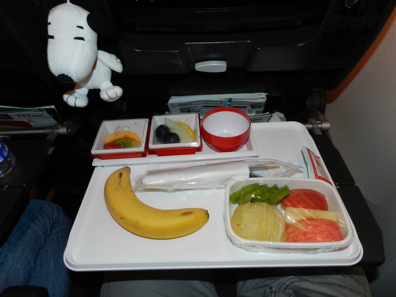 出発時刻が22:00、機内食が出るのが23:30頃なので、その時間に食べるには通常の機内食は少々重いので“フルーツ食”はちょうど良いなと感じました。