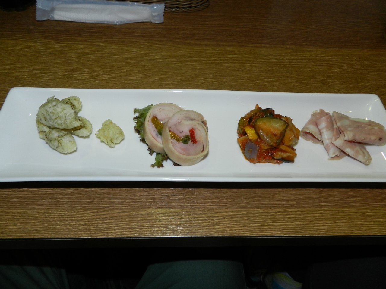 前菜・サラダ・パスタ・ピッツァ・ドルチェが付いて@2000円という“ピッツエリアコース”をいただきました。