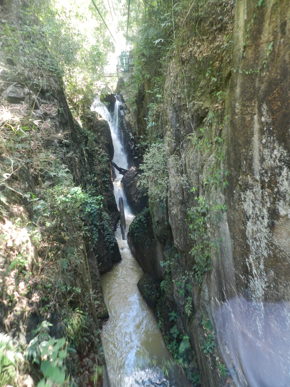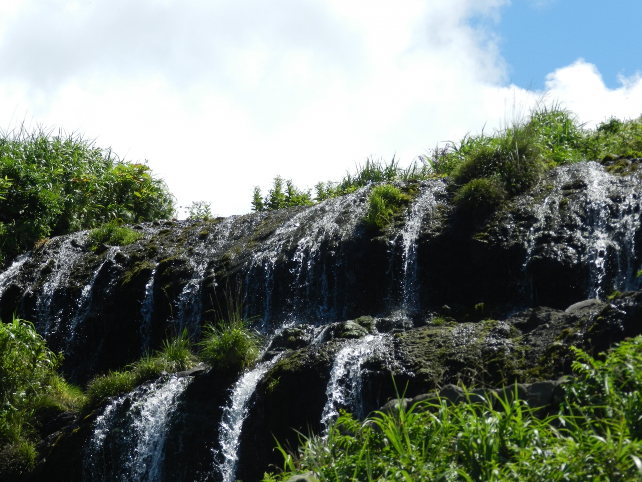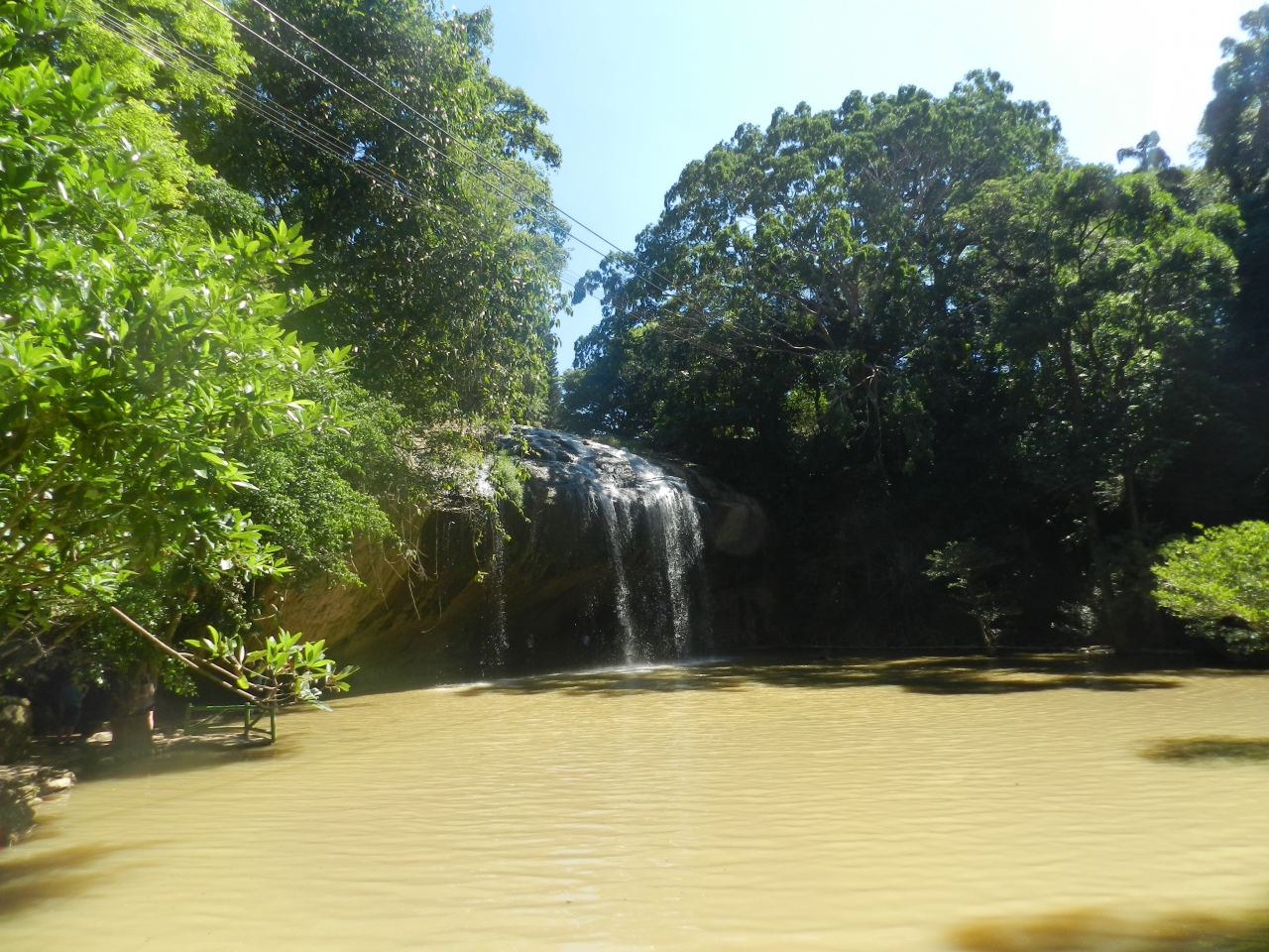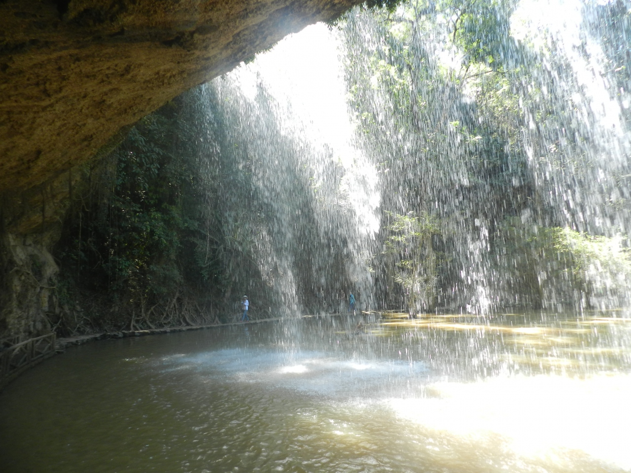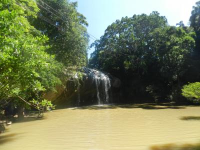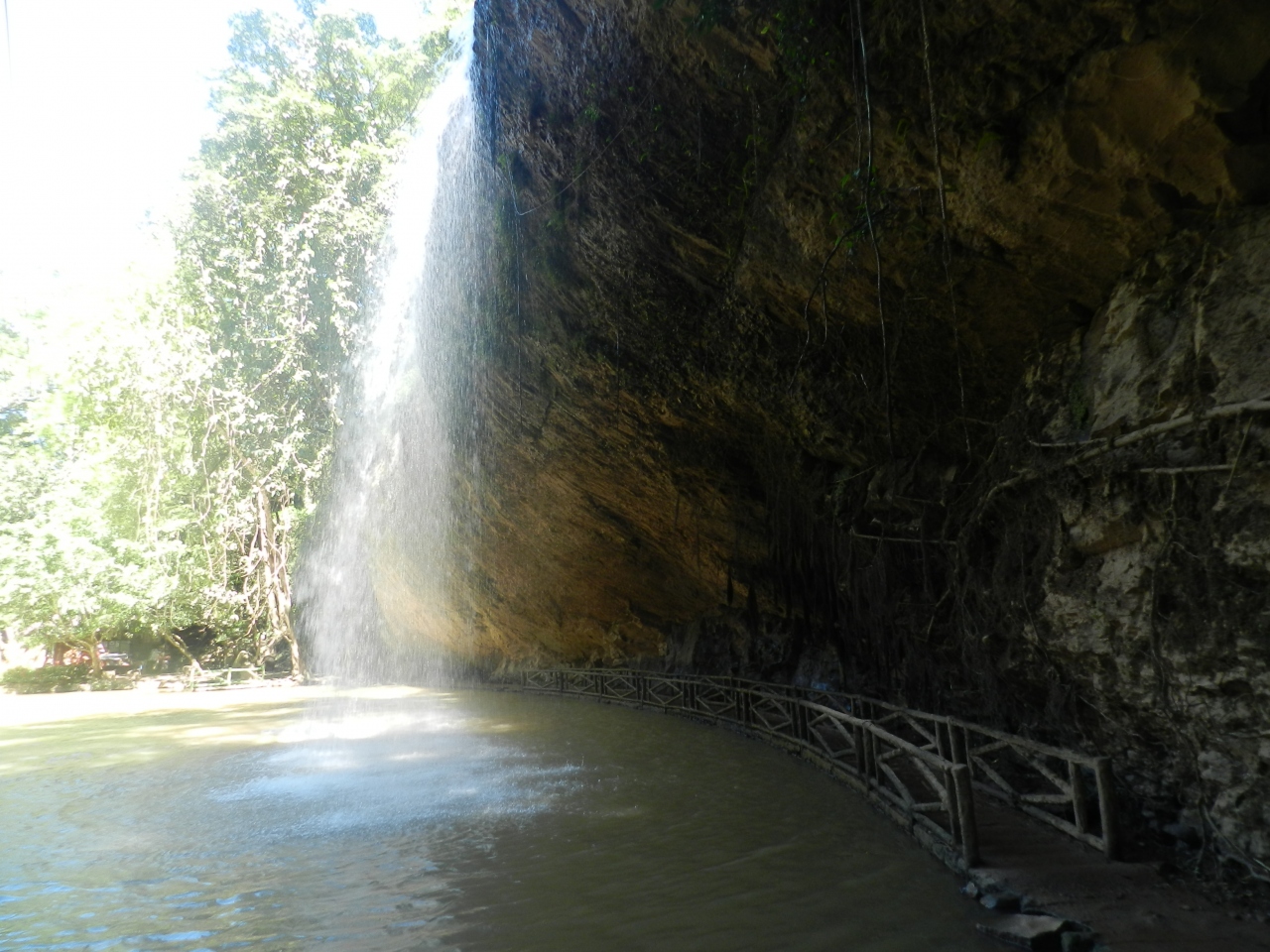オーバーハングした断崖にかかっているので、滝の裏側を一周することができます。ただ、流れる水は土や砂が混じった茶色っぽい水で、それが景観を損ねているのは否めませんでした。