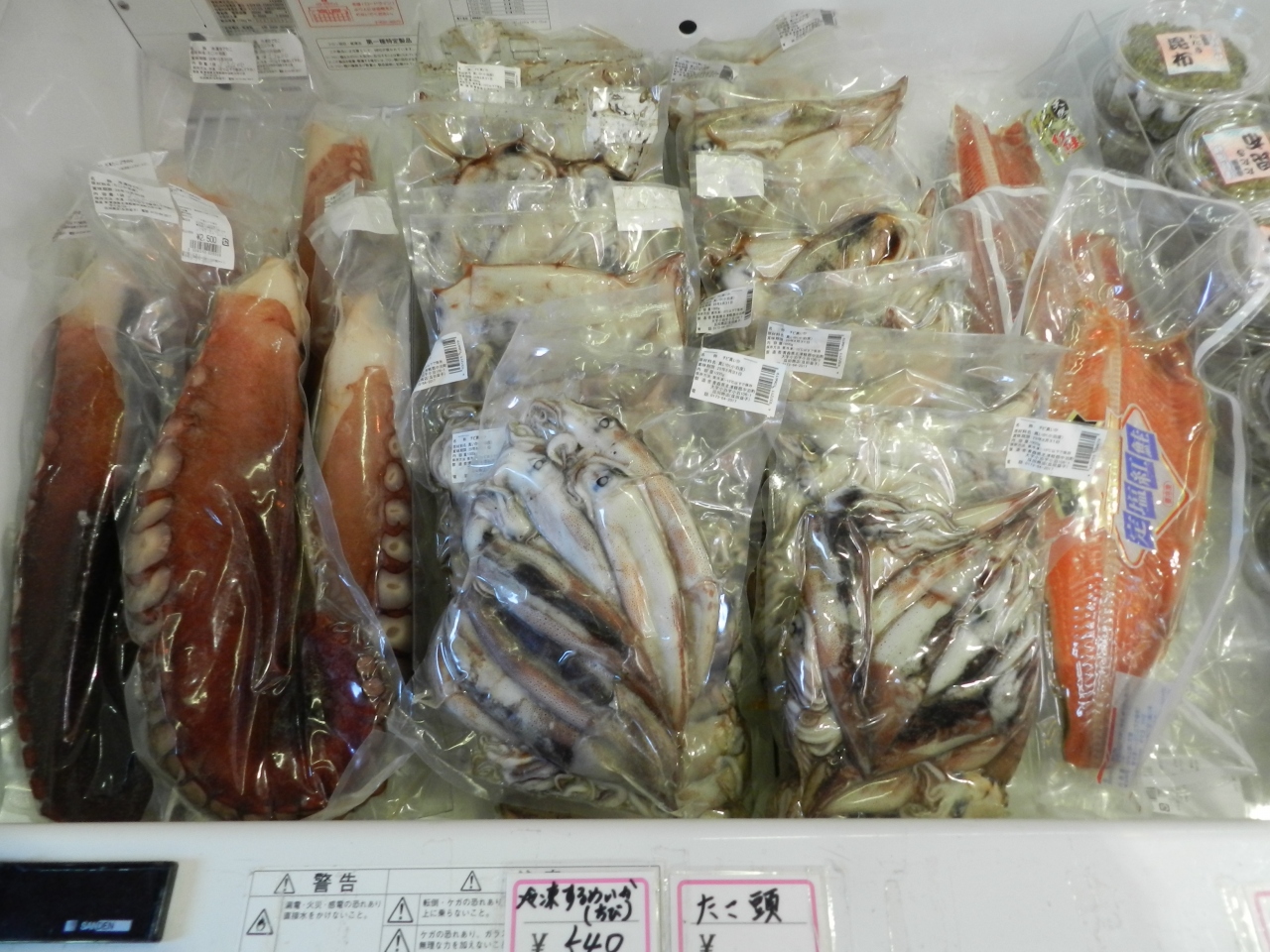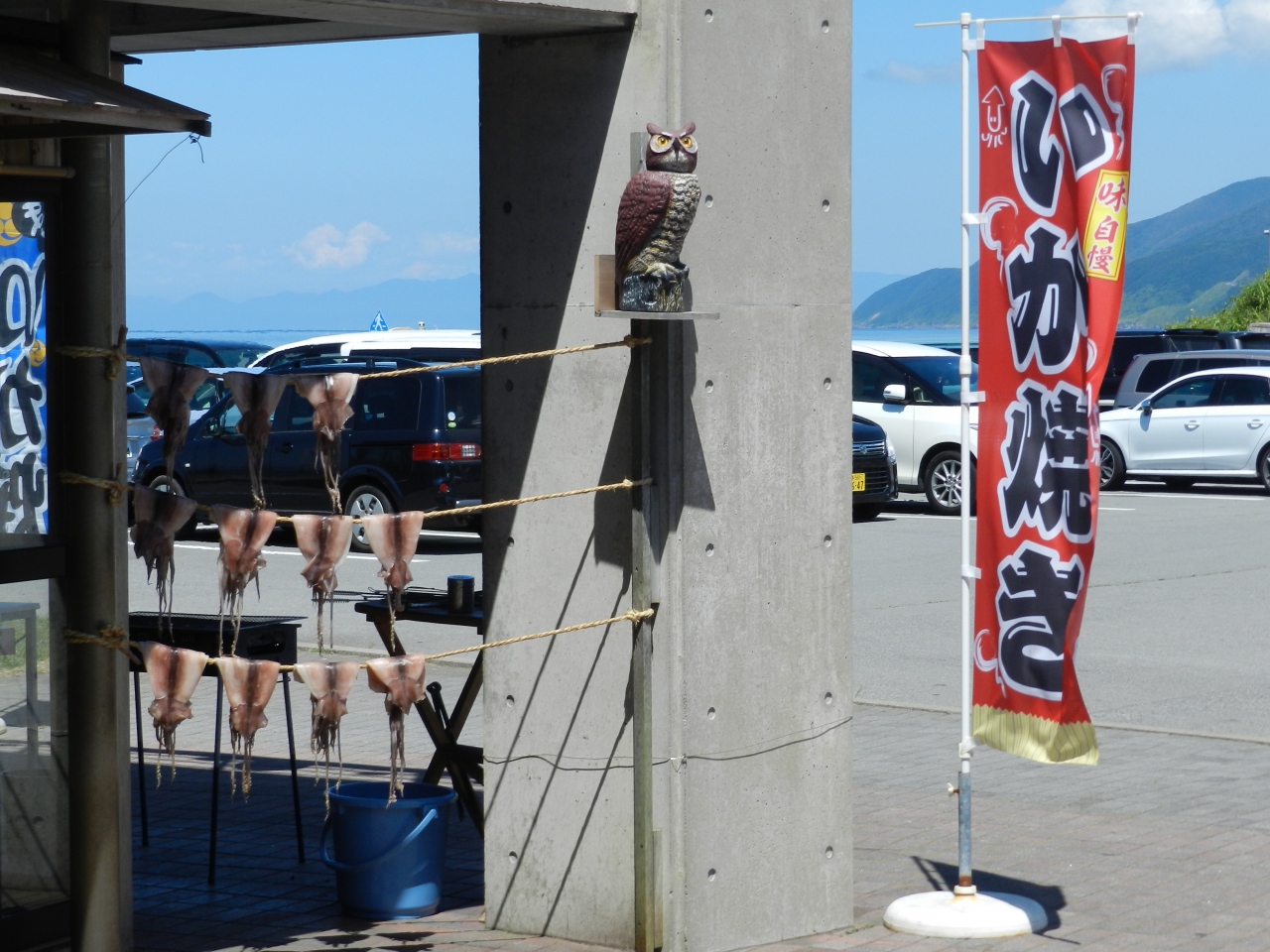 ショップには近海で獲れたであろう鮮魚介類があったり、店先にはイカの姿焼きの屋台があったりと、退屈しませんでした。