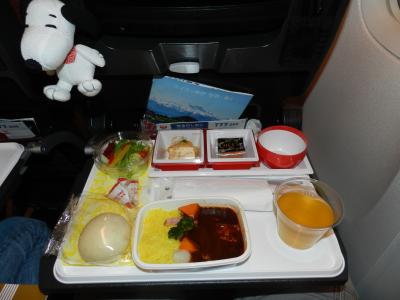前に登場した時に妻が“ヴェジタリアン食”を事前に予約して、それが良かったので今回もそうすることにしようとJALに電話してみると、他に“フルーツ食”というのがあることを知り、初めてそれをオーダーしてみました。