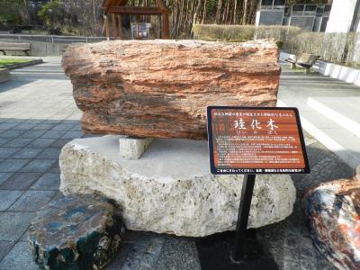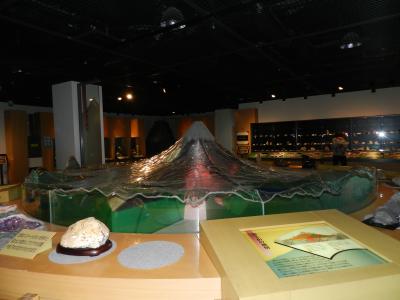 玄関前には強大な石や”珪化木”と呼ばれる木の化石等が展示されていて、中に入ると富士山に関する資料や展示物があります。