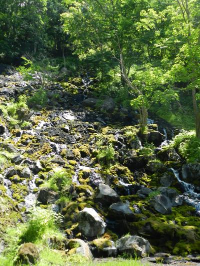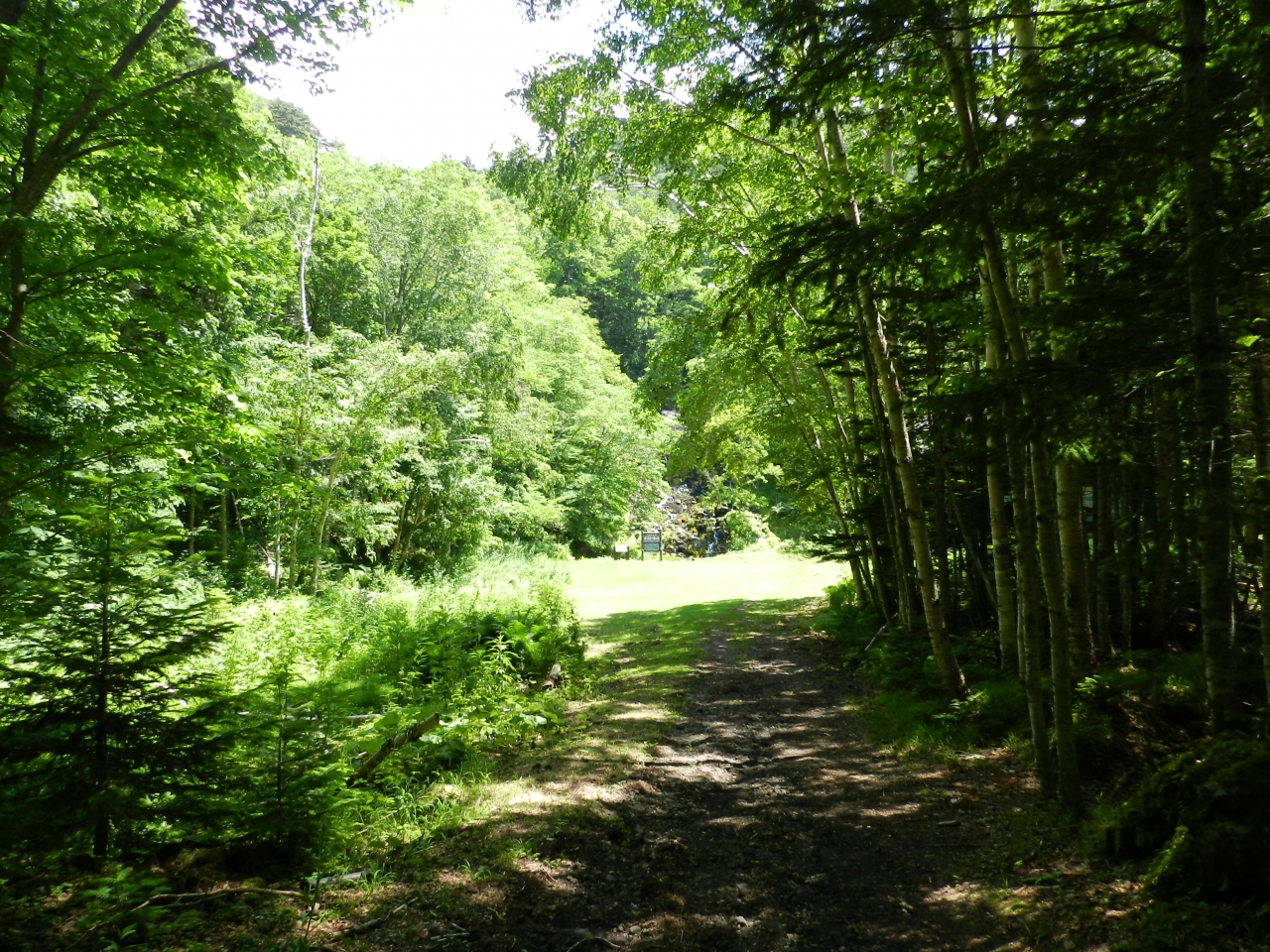 「オンネトー」の湖畔沿いの道を奥に走ると「湯の滝」の入口があります。